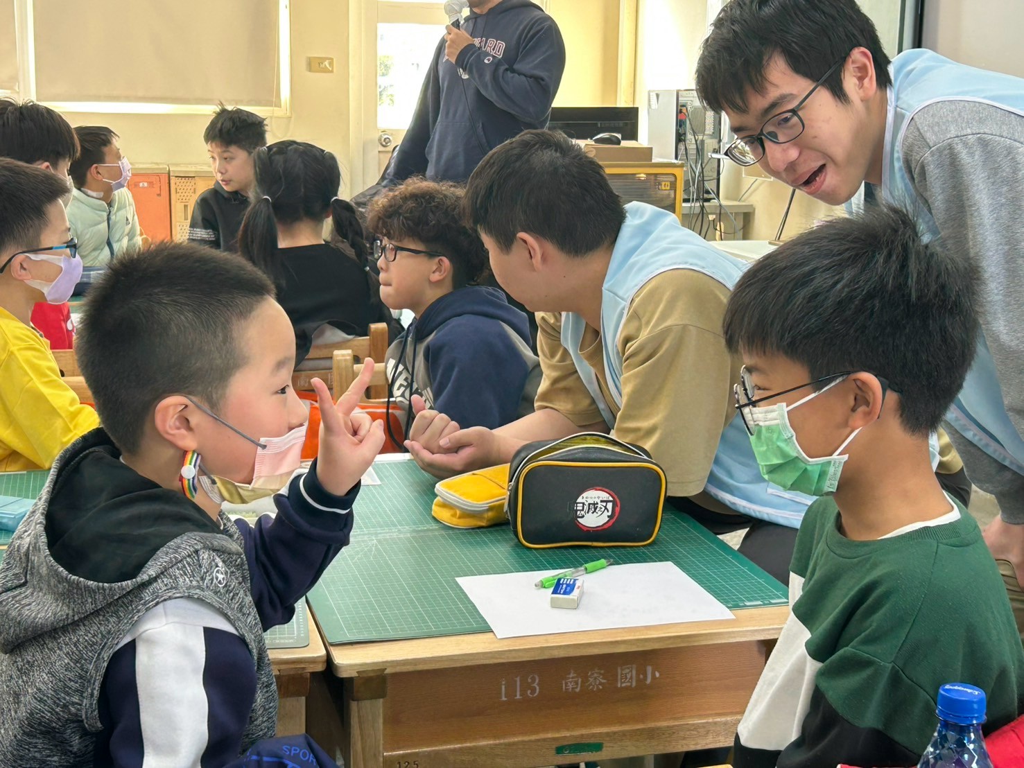 南寮國小近幾年來極力推動程式桌遊課程,感謝台積電文教基金會的資源挹注,陽明交大電機系的學生志工協助,以及不惜舟車勞頓的講師海霸老師,共同促成本校學生能有機會接觸程式桌遊課程。「一堂不用電腦的程式課,一次開啟孩子對程式興趣的契機」,每學期我們針對中年級與高年級各開一個下午的課程,總是吸引小朋友手刀報名、秒殺額滿!甚至同學們會一而再、再而三的成為課堂的忠實粉絲,為的就是想要來挑戰更進階、更厲害的邏輯思考與設計能力。在對戰的過程中,我們希望學生在面對未來,不是成為另一台訓練有素的電腦,而是讓學生學會程式背後的運算邏輯;藉由好玩、刺激又燒腦的程式冒險,我們遊戲開始,創造力啟動!