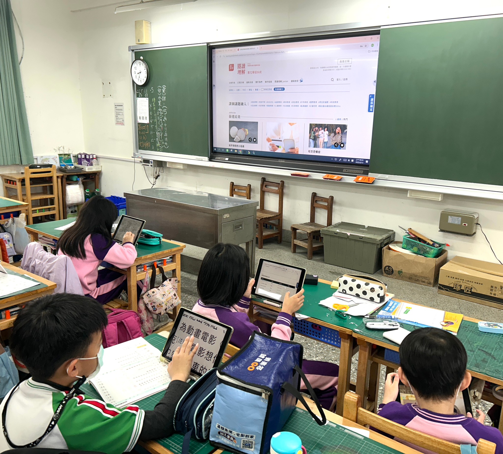 文章裡內容多元,也拋出社會議題來探討。四年級學生之於深度知識性文章已開啟好奇心,師生們討論文章疑問,和測驗題目解析,學生們線上作答之後,全班可以從後台立即瞭解本次成績分布、統計。