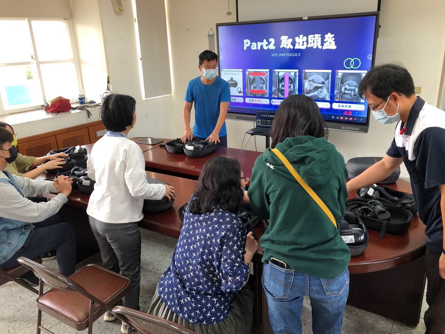 在江老師的指導下,教師們親自操作VR設備,感受這種沉浸式教學帶來的震撼效果,並討論如何將這項科技應用於課堂中。大家一致認為,VR技術能夠補足傳統教學的不足,讓學生更具體地理解抽象的天文概念,也能提升學習興趣與專注力。