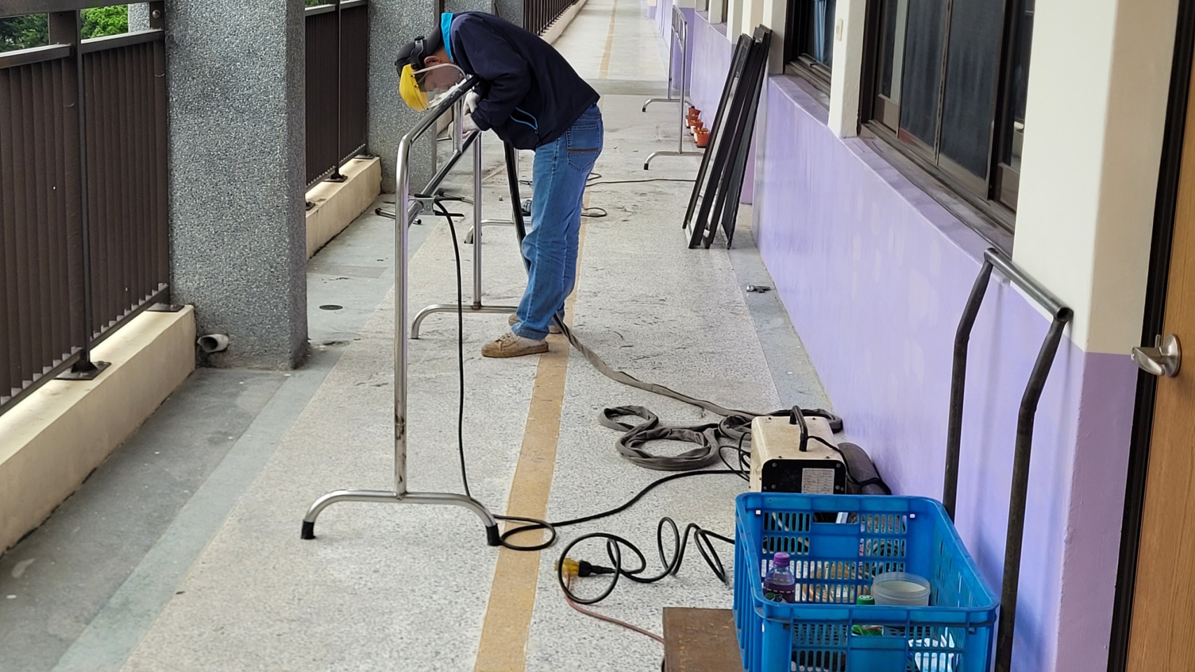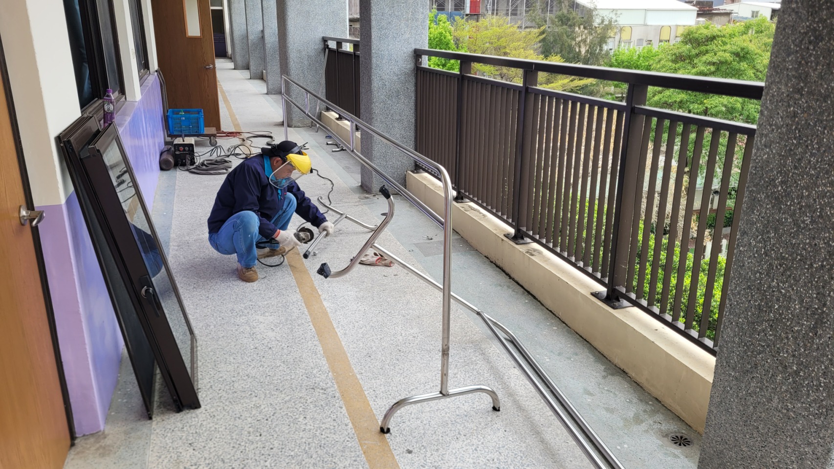 總務處趁著假期派廠商協助將舞蹈班活動扶手做稍為的改裝,廠商阿伯很認真幫忙將活動扶手改裝成更適合孩子使用的模樣,在經過阿伯切割焊接後扶手變得堅固,感謝每一個默默付出的人~提供更優質的教學環境!!