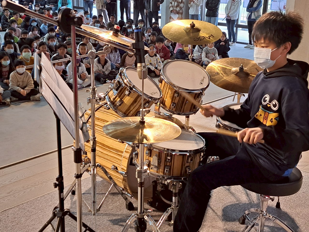 特別值得一提的是爵士鼓表演,感謝熱心家長協助將家中整套爵士鼓搬運至學校,成為全場焦點之一。所有入選團隊在接受本校藝術領域師長的專業指導後,演出更顯成熟精緻,舞台魅力十足。