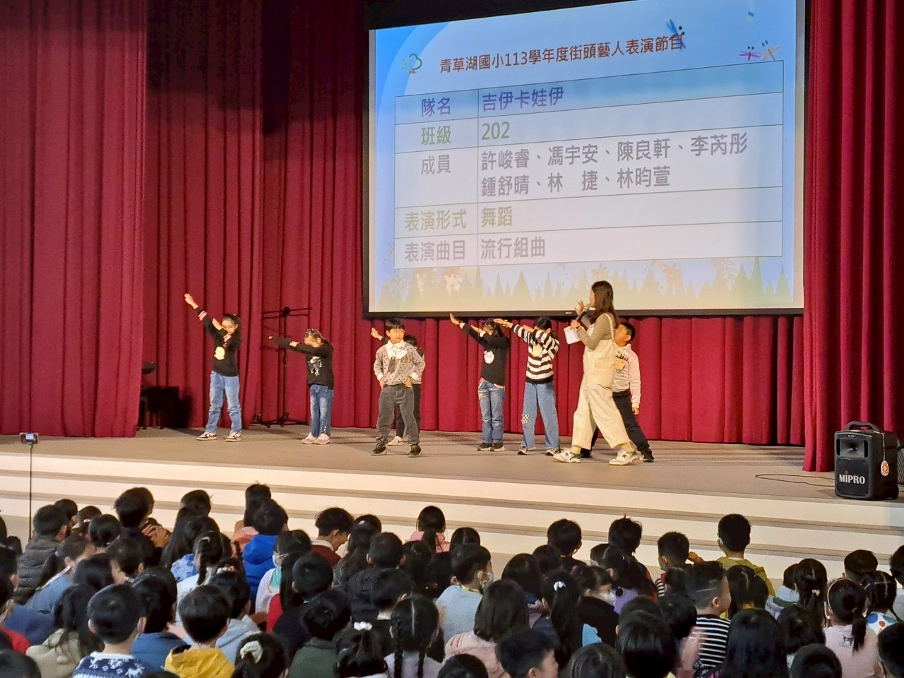 青草湖國小一年一度的兒童節重頭戲——「街頭藝人表演」活動,於114年4月2日兒童節前夕盛大登場。今年首次移師至新落成的學生活動中心舉行,場地更寬敞、音響與燈光設備更齊全,讓整場表演更具專業與正式感,吸引眾多家長前來觀賞與支持。