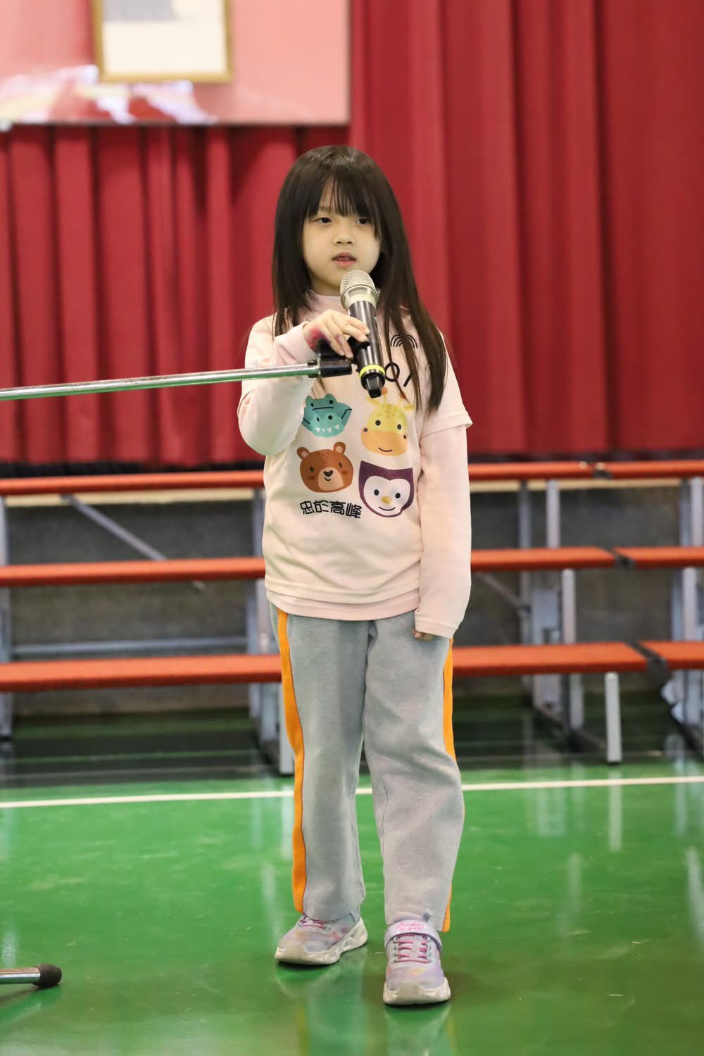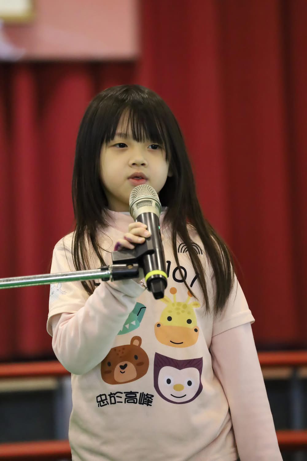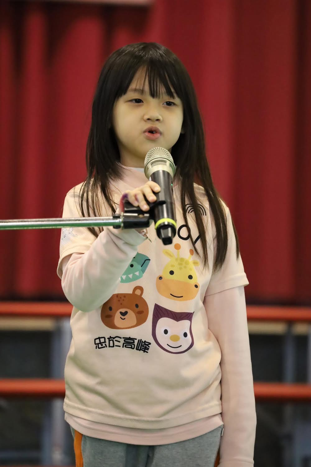 高峰校園日誌:第五棒上台演出的是此次表演秀唯一的一年級張同學,帶來的是喜劇脫口秀(李總與張醫生),這一段講述病人和醫生幽默詼諧、有趣的互動,重點是由一位一年級的小朋友演出,其勇氣和台風獲得大家如雷的掌聲!