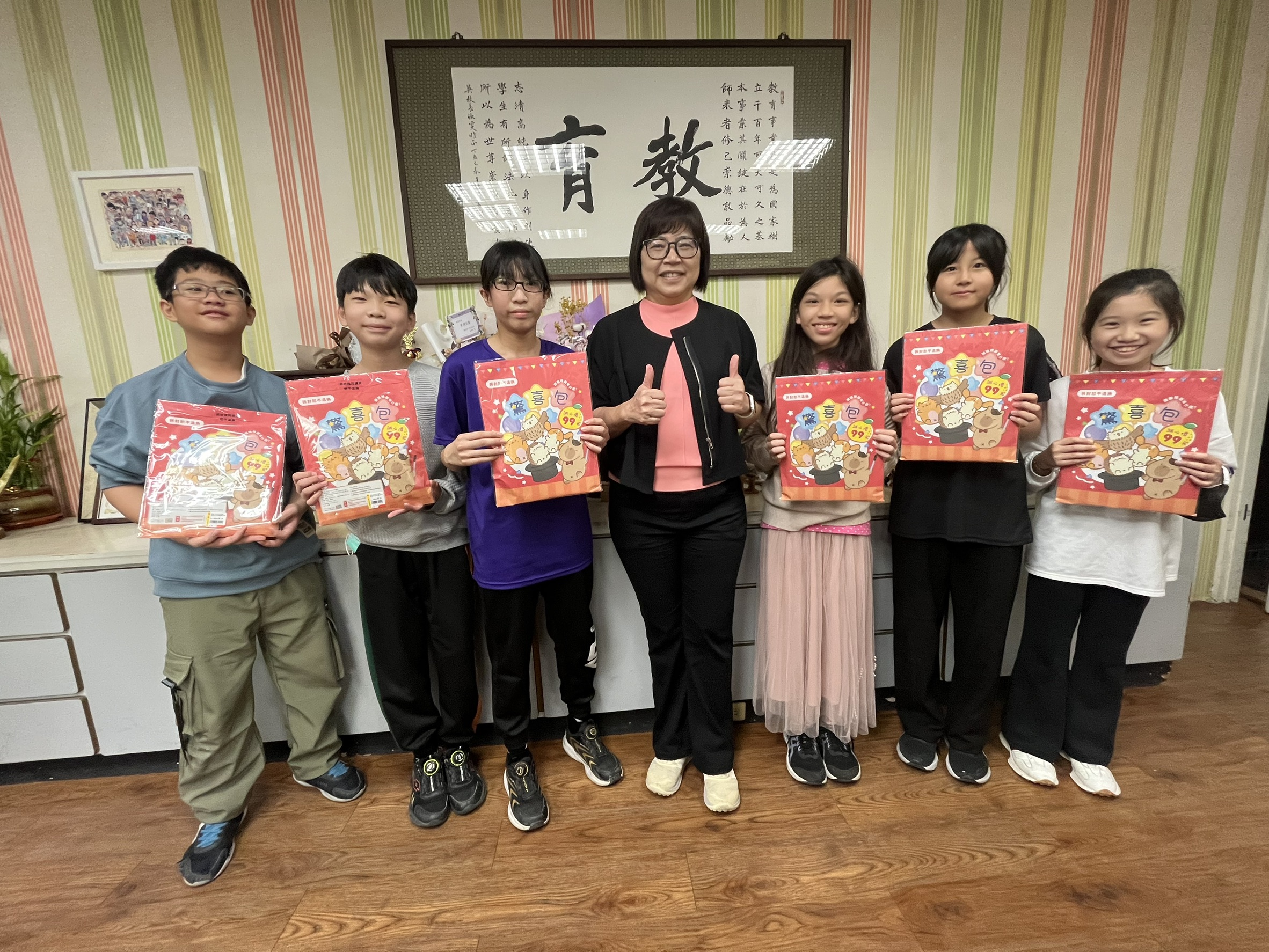 交安小尖兵◆路口執勤去,為了使更多學生投入交通安全宣導行列,將已知交安意識推廣出去,更能發揮影響同儕的力量。這個月的交安小尖兵是五年2班的學生,他們用心認真宣導,讓活動大成功,淑雯校長於114年4月9日頒獎給孩子們,大大稱讚及感謝~。