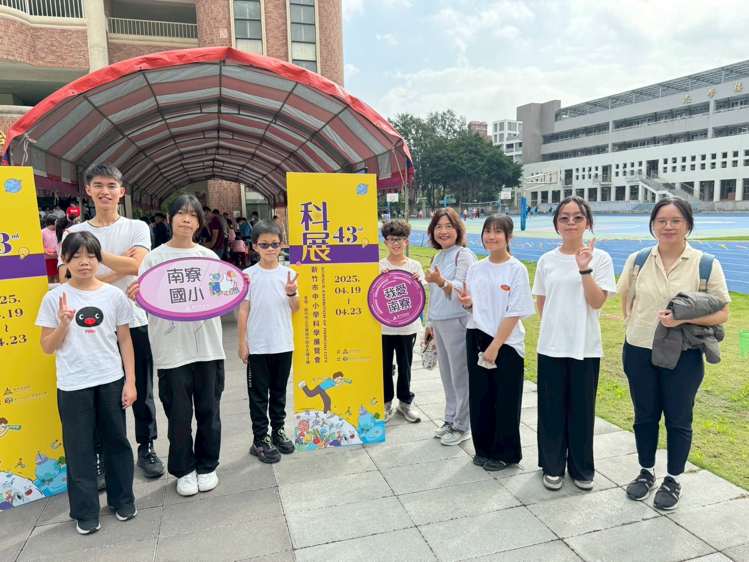 😀114年4月18日,新竹市舉辦第43屆國民中小學科學展覽競賽,南寮國小學生在本次競賽中表現亮眼,由周以德老師與林榆凡老師指導六位學生參賽,包含六年級的葉涵涵、蘇婕晞、鄭伊晴與五年級的王昱崴、吳翊嘉、許宸睿。