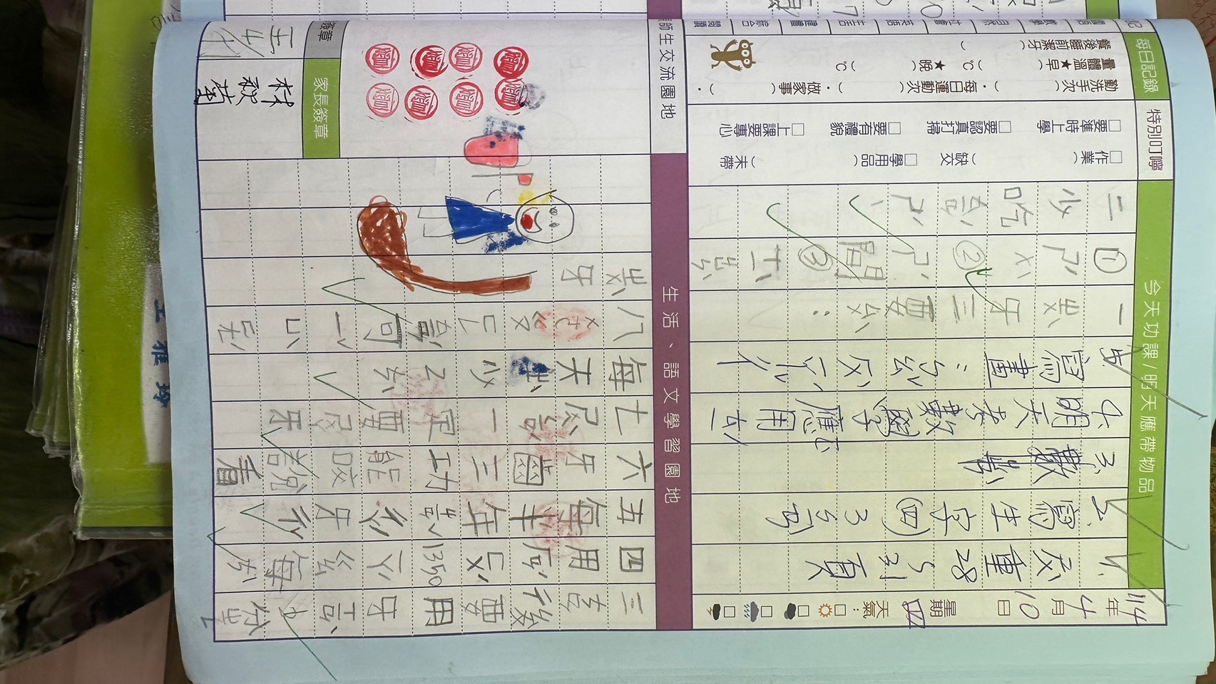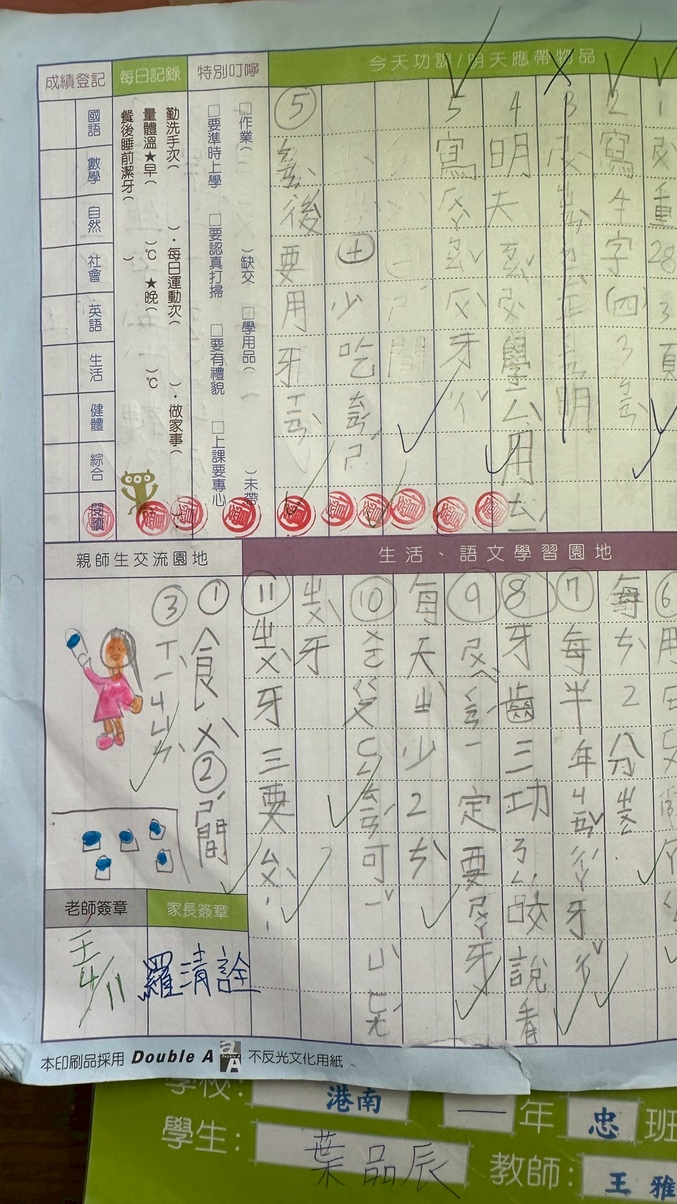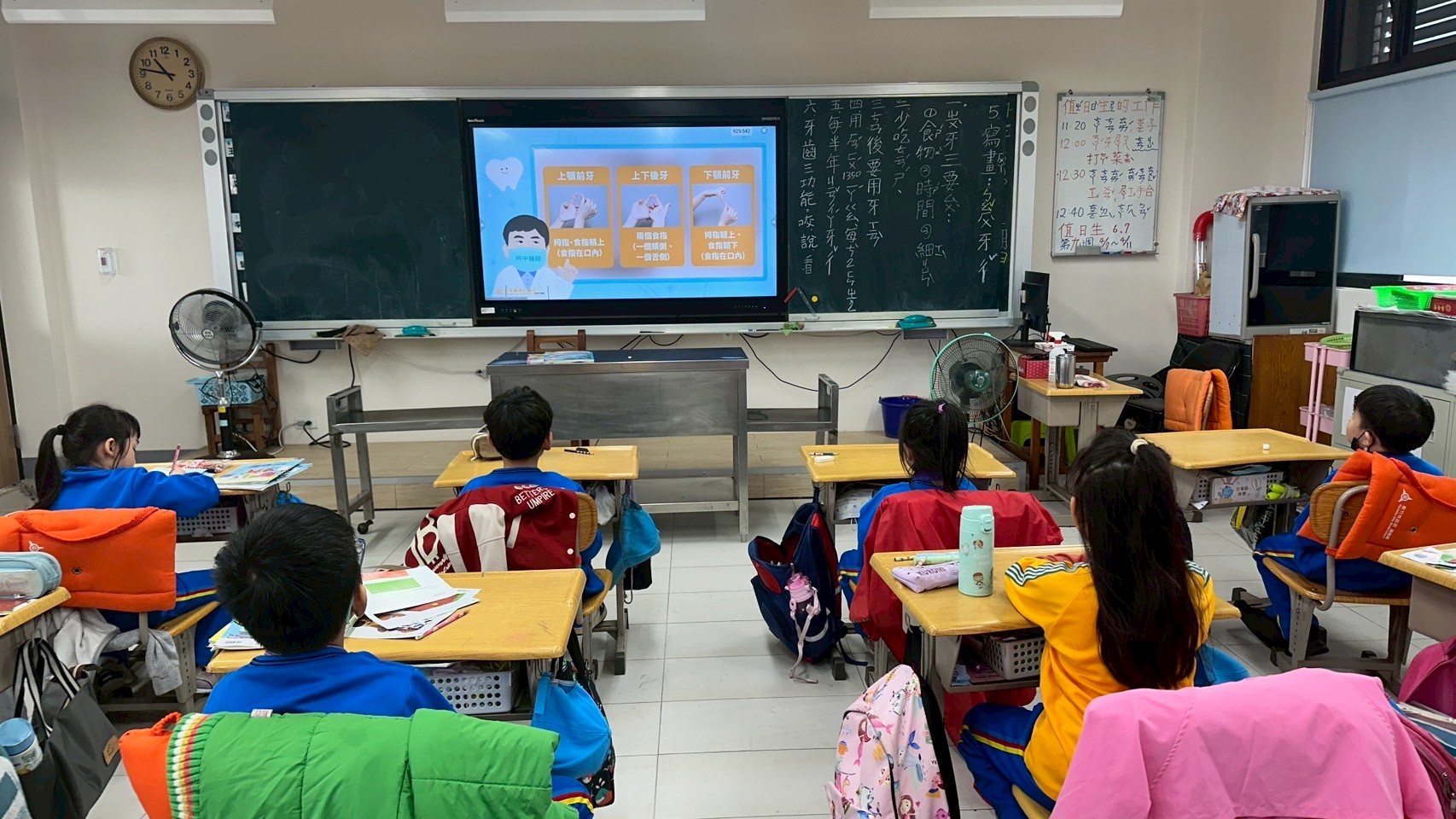 114.04.10 在一年級的健康促進課程中,雅鈴老師用數篇潔牙小影片搭配著學童聯絡簿,指導孩童了解並能在日常生活中落實護牙護齒學習。