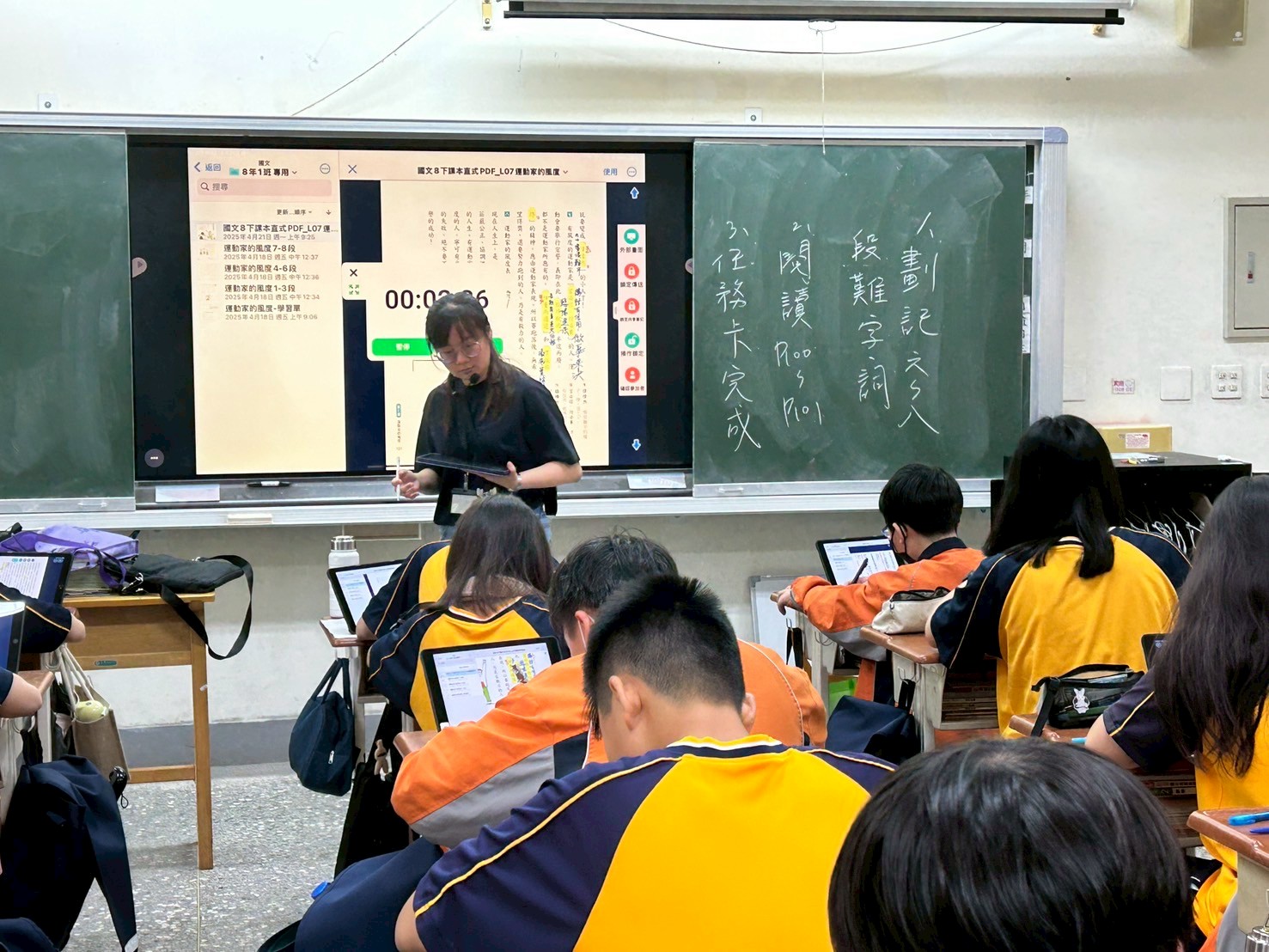 黃老師運用平板電腦作為學習工具,讓學生在數位平台上進行生字詞查找與內容理解。課堂中,她將學生分為不同小組,並賦予組長、副組長等明確角色,透過任務卡引導學生探討「君子之爭」、「服輸精神」、「超越勝敗的心胸」及「嚴謹的紀律」等運動家特質。