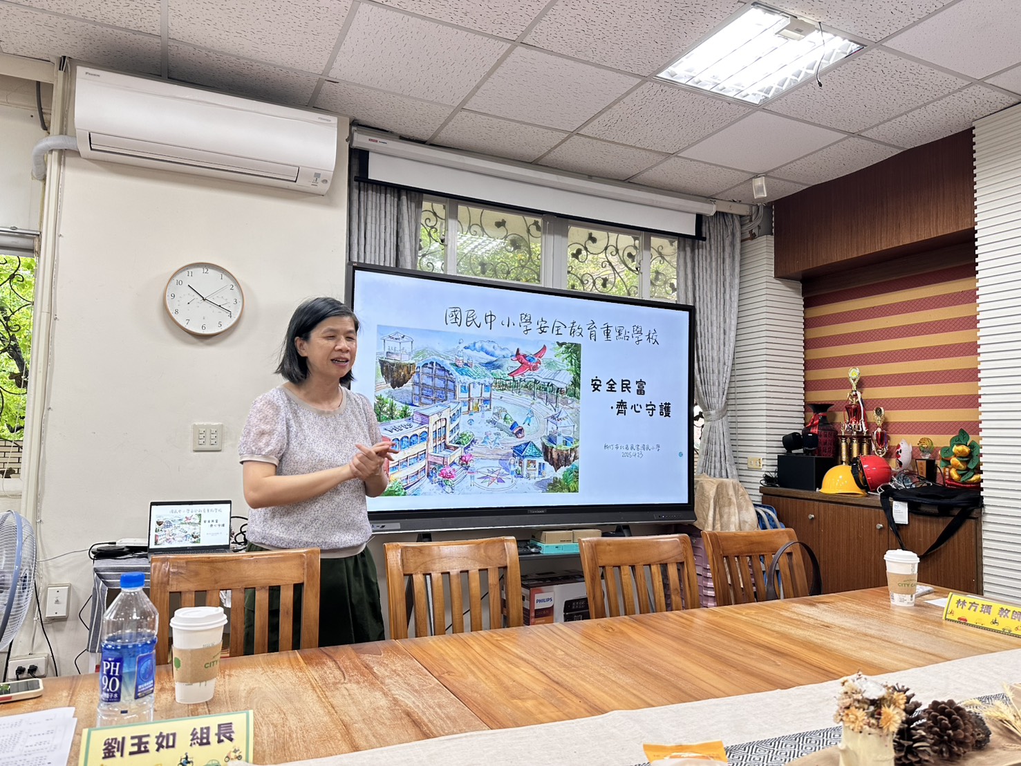 本校於114年4月23日(三)上午進行安全教育重點學校訪視,為了讓訪視小組能在短時間內了解本校各方面作為與成果,生教玉如組長從四個面向來說明,組織規劃、教師增能、課程轉化與實施及活動宣導,接著談到孩子建立觀念並落實在生活中的點點滴滴,最後談到本校接下來的目標。