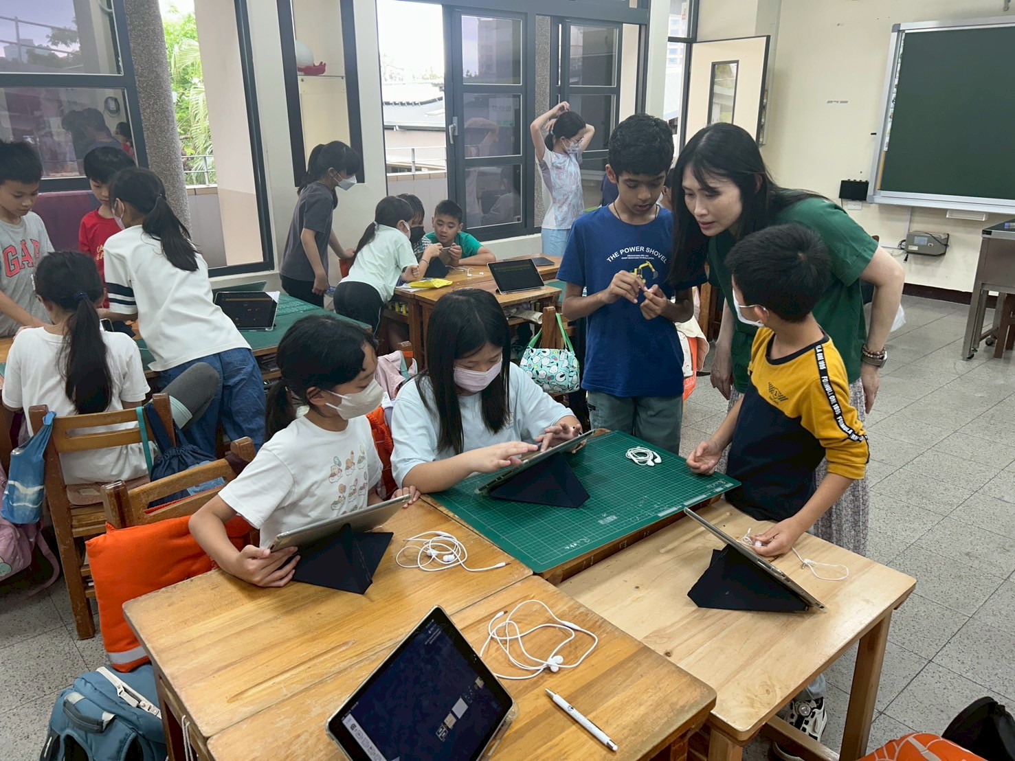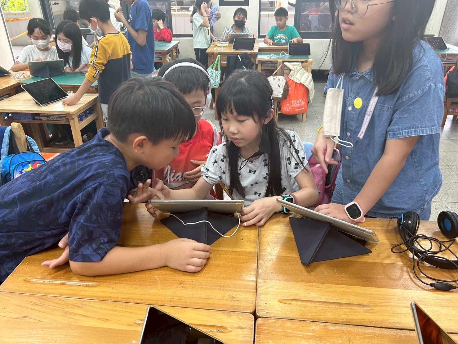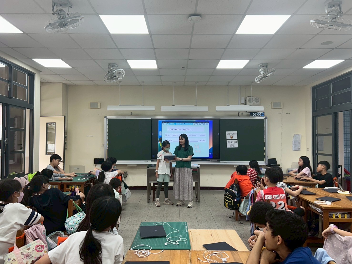 教師運用平板搭Loilonote及GarageBand,讓學生認識與區別打擊樂器的特質,並讓小組工同完成創作任務,譜出四部不同樂器交織而成的旋律,最後繳交小組作業至平台,進行組間共學,互相欣賞各組的作品,師生互動默契好,是藝術X雙語結合科技融入的美好樂章~