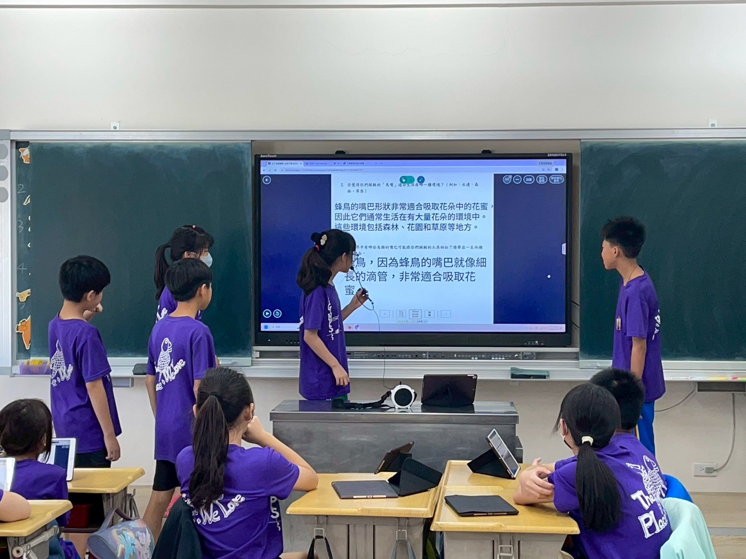 114年4月29日數位學習公開授課主題為校訂課程---闊喙食四方。五忠導師陳佩芳老師為延伸學生學習經驗,設計單元課程「生生不息:闊喙食四方」,讓學生透過自學影片、圖鑑閱讀、小組討論與模擬實驗活動,進一步理解鳥嘴型態如何影響覓食方式,並發展出不同鳥類的生態適應策略。課程同時結合四學模式及數位工具(平板、Padlet、Loilonote、wordwall),鼓勵學生主動探索、協作分享,並在教師引導下統整知識,培養觀察、分類與解釋生物構造與功能間關聯的能力,為後續仿生設計與跨域學習奠定基礎。