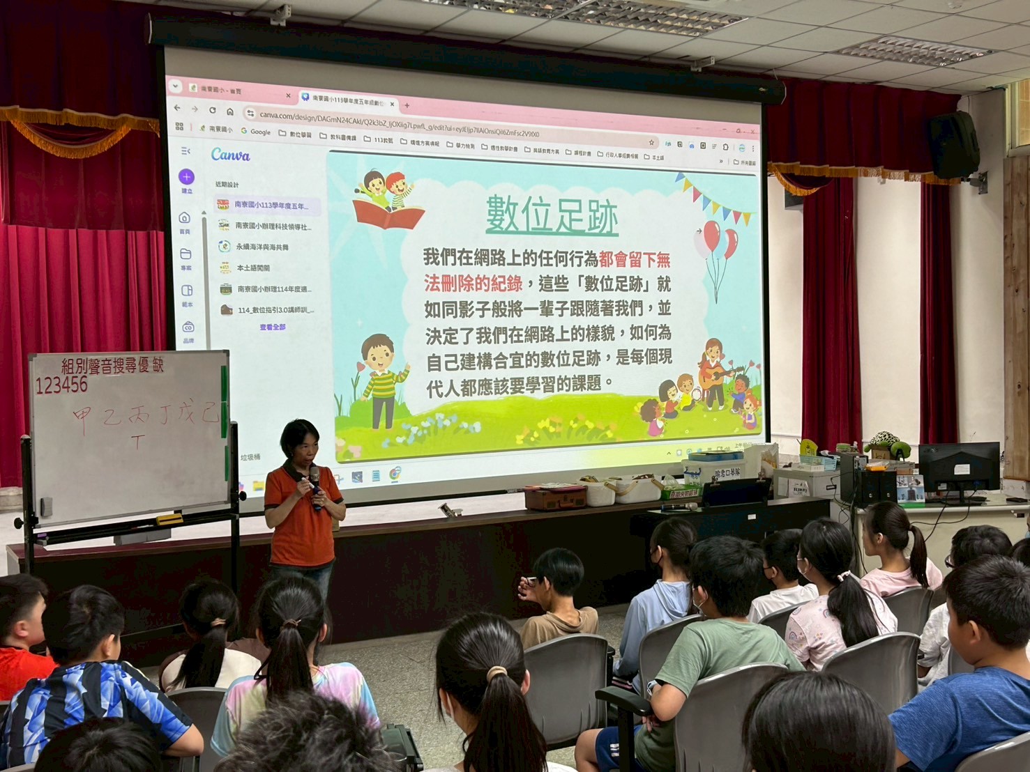 南寮國小辦理五年級數位素養課程 五年乙班榮獲團體獎為提升學生在網路時代的正確使用觀念,南寮國小於114年4月25日舉辦五年級數位素養課程,課程由教務主任劉麗娟主任親自授課,內容涵蓋網路隱私、網路識讀與網路沉迷等重要議題。課堂中,麗娟主任透過影片欣賞與引導提問的方式,帶領學生們思考並討論在日常生活中應如何正確且安全地使用網路。學生們針對影片內容踴躍發表想法,各班皆表現積極、參與熱烈,展現出良好的思辨與表達能力。 本次活動特別設計了班級參與競賽機制,綜合各班的參與情形與表現,最終由五年乙班脫穎而出,榮獲團體獎,展現出優異的團隊合作與數位素養態度。 南寮國小長期重視資訊與數位素養教育,期盼透過系統性的教學設計,讓學生能在科技快速發展的環境中,建立正確的價值觀與安全使用網路的能力。