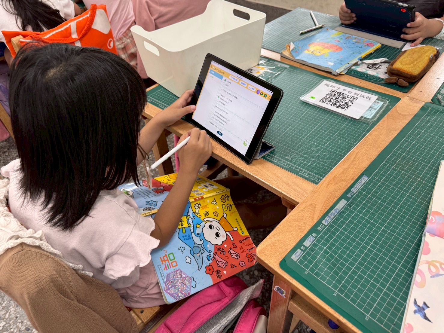 本次課程「神筆馬良」以國語文閱讀理解為核心,張老師運用LoiLoNote School卡片工具進行提問與任務分派,學生使用iPad與觸控筆進行即時回應與互動,有效提升專注力與課堂參與度。課程設計採用「四學」教學策略——學生自學、組內共學、組間互學、教師導學,讓學生依據課文內容進行小組討論,從中發展閱讀理解與表達能力。