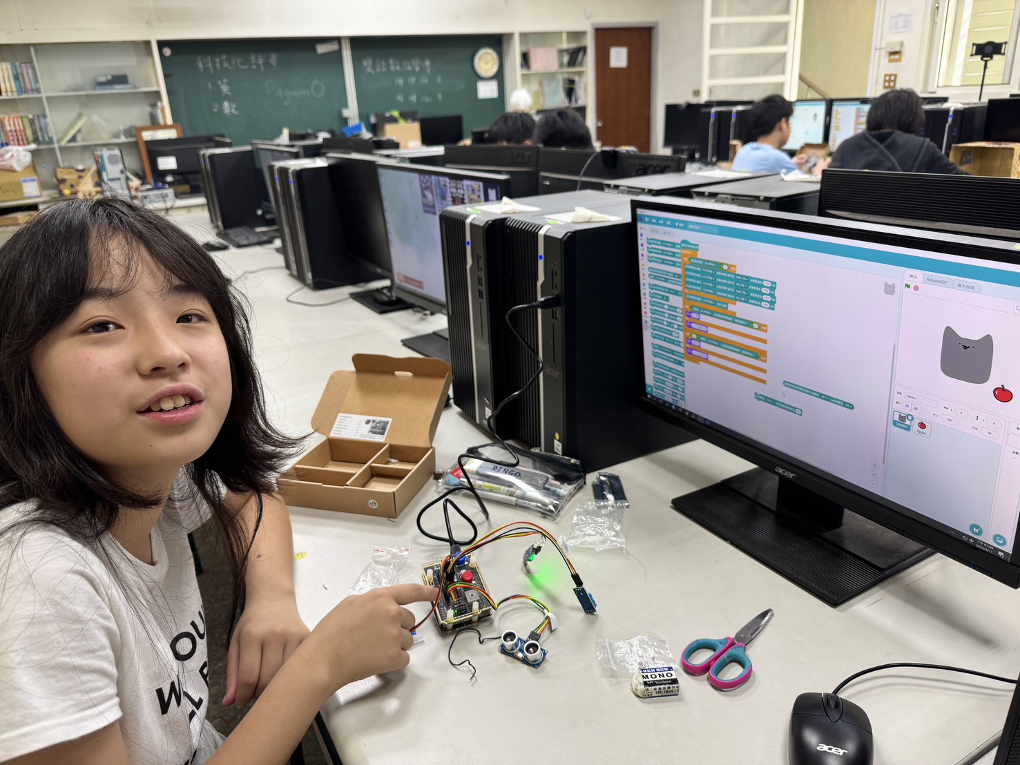 課程以循序漸進的方式引導學生認識各類感應器的功能與應用原理。學生透過動手實驗,了解如何透過光敏電阻設計自動開關燈系統,並運用溫溼度感應器與LCD顯示器結合,製作能即時顯示室內氣候狀況的提示裝置。同時,也學會使用滾珠開關設計簡易的地震警報系統,提升對生活科技的應用敏銳度。