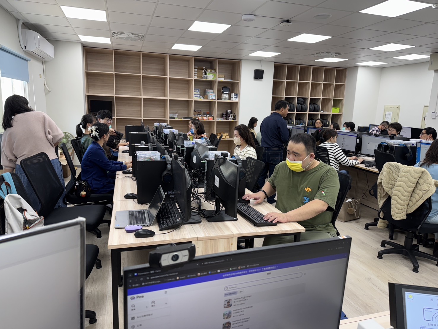交流過程中,我觀察到教師們從一開始的好奇與觀望,逐漸轉變為躍躍欲試的興奮。他們紛紛拿出手機或筆記型電腦,跟著輔導員的步驟實際操作AI工具,現場氣氛熱烈。許多老師表示,透過這次交流,他們對AI不再感到陌生與遙遠,反而看到了AI在教學上的巨大潛力。