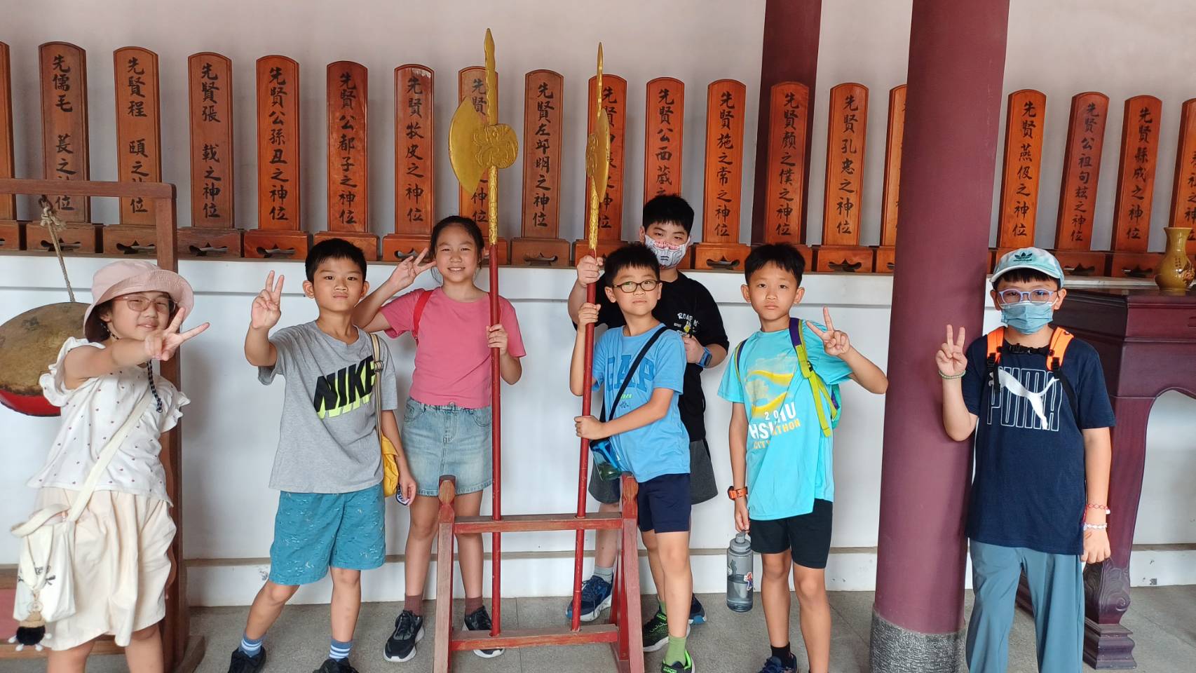 這學期的社會軸課程主要是帶領學生認識汀埔圳附近的信仰中心,首先在課堂上透過簡報敘說土地公的傳說故事以及新竹市孔廟的沿革,並跟學生介紹土地公廟和新竹市孔廟的建築之美,接著再帶領孩子實地探訪土地公廟和新竹市孔廟。土地公廟的雕樑畫棟呈現了傳統工藝的美學,讓學生嘆為觀止,而孔廟是紀念孔子的重要場所,不僅具有歷史價值,也蘊含著深厚的文化意義,希望學生們藉由這次的探訪,在認識信仰中心之餘,也能進一步的愛護家鄉的這些文化資產。