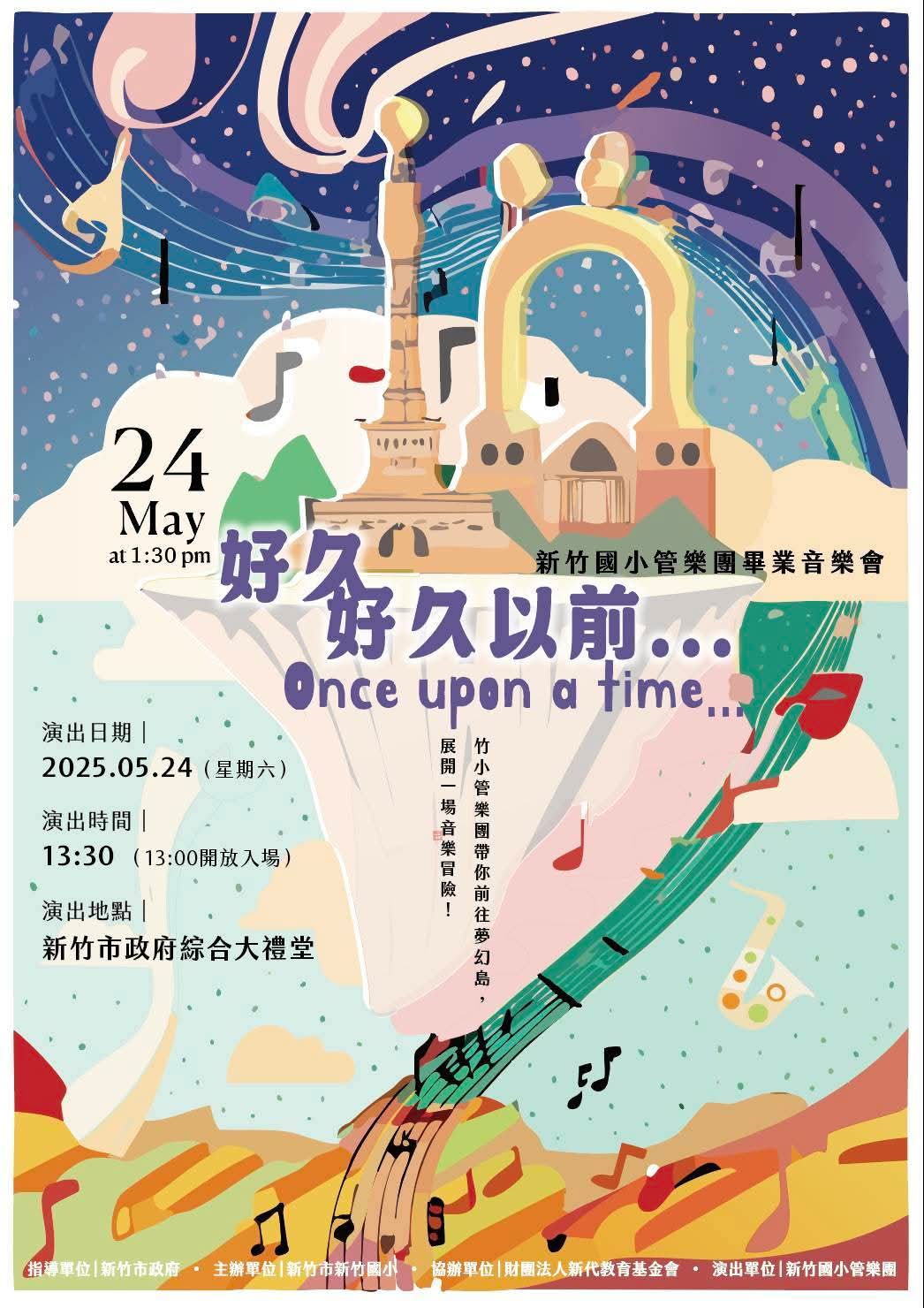 新竹國小管樂團將於今(5/24)日下午1時30分,於新竹市綜合大禮堂舉行2025年度公演,演出主題為「#好久好久以前」。