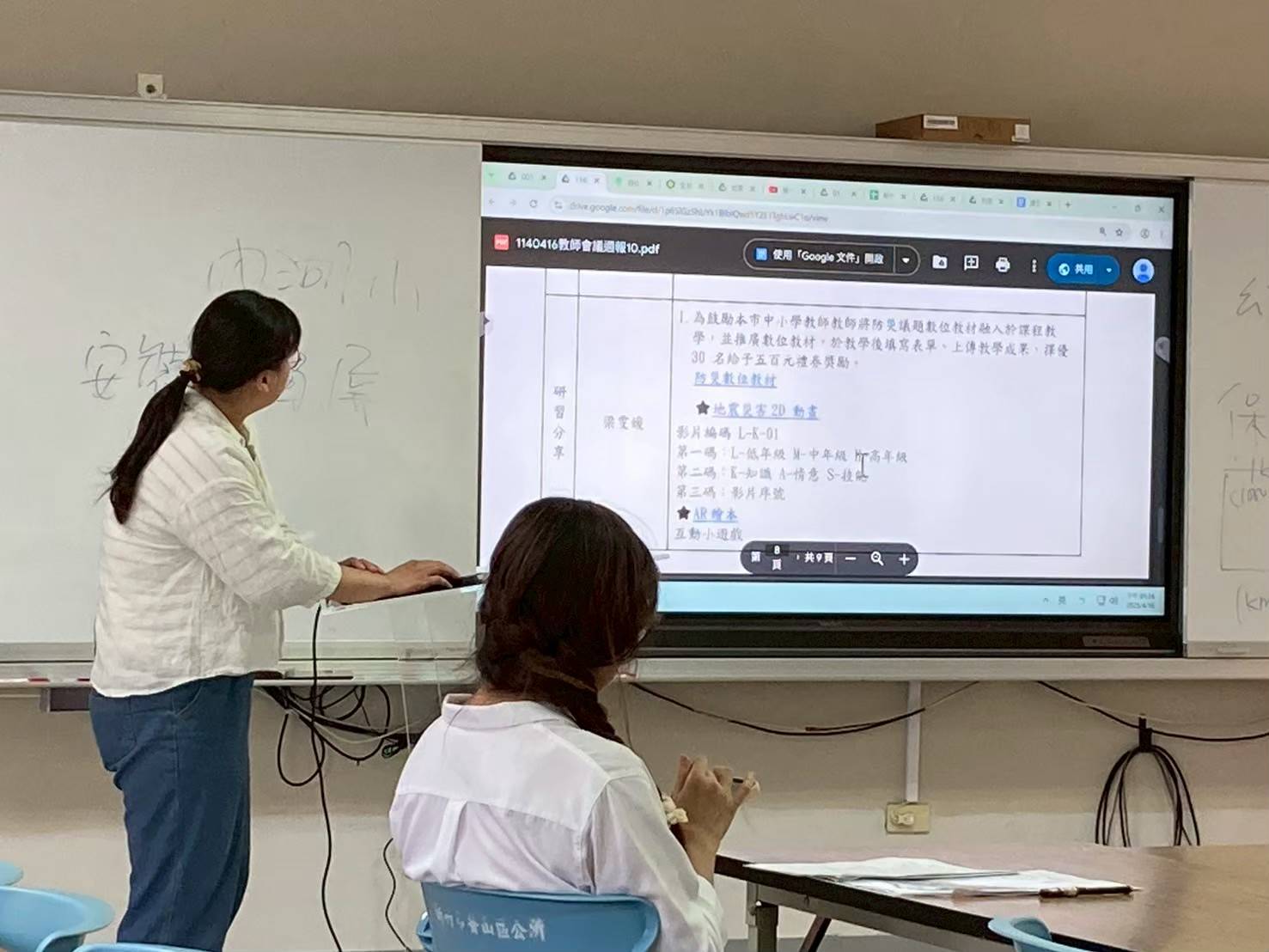 總務主任參加防災教育研習,課程中講師介紹了教育部所製作的多樣性教材,包括防災主題的影片、互動遊戲與繪本等,內容豐富又生動,適合不同年齡層學生使用。回校後,總務主任便透過每週的教師週會,將這些實用資源與課程內容分享給全校老師,讓更多教師在進行防災教育時能運用現有的教學素材,提升學生的學習效果與防災意識。