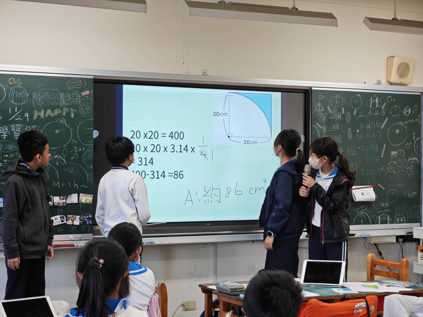 謝婉廷老師本次課程以「扇形面積」為核心概念,結合數位學習平臺,設計出具互動性與探究精神的教學活動。不僅讓學生理解扇形面積的計算公式,更透過操作與觀察,加深對幾何圖形面積概念的理解與應用能力。