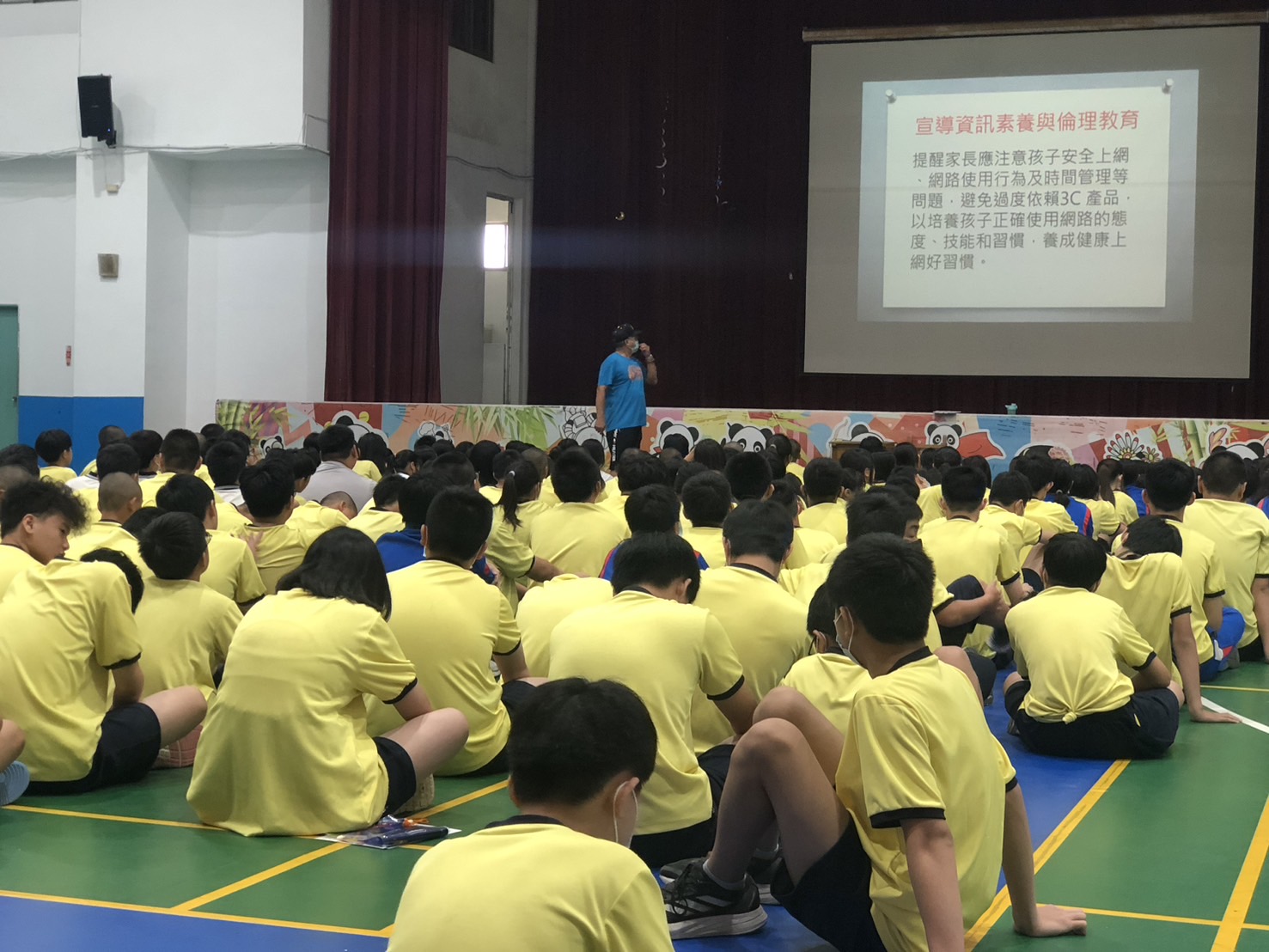 利用結業式「網路素養教育」,並落實「網路禮儀與法律常識」暨「網路霸凌防制」等議題之宣導。提醒家長應注意孩子安全上網、網路使用行為及時間管理等問題,避免過度依賴3C產品,以培養孩子正確使用網路的態度、技能和習慣,養成健康上網好習慣,避免兒童及少年無知,於網路遭有心人士誘惑而涉性剝削。勿非法散布謠言影響公共安寧、違法上傳不當影片、入侵他人網站竊取或篡改資料等,請同學要有網路使用認知素養並尊重個人隱私權益,以免誤蹈法網。