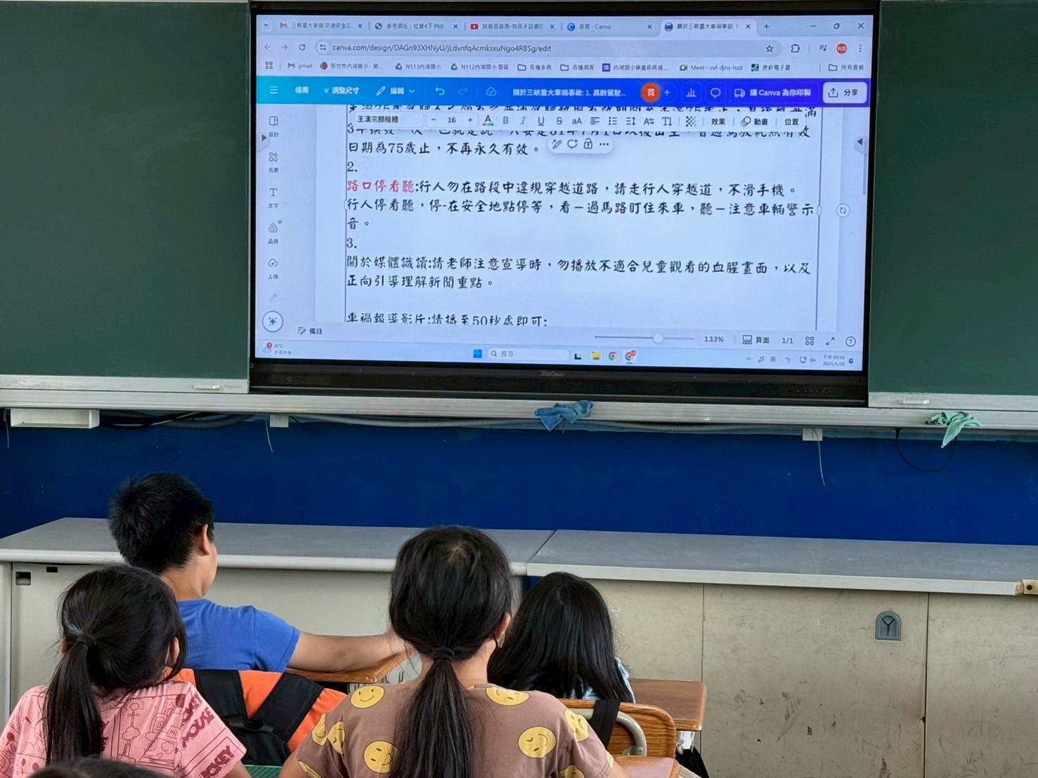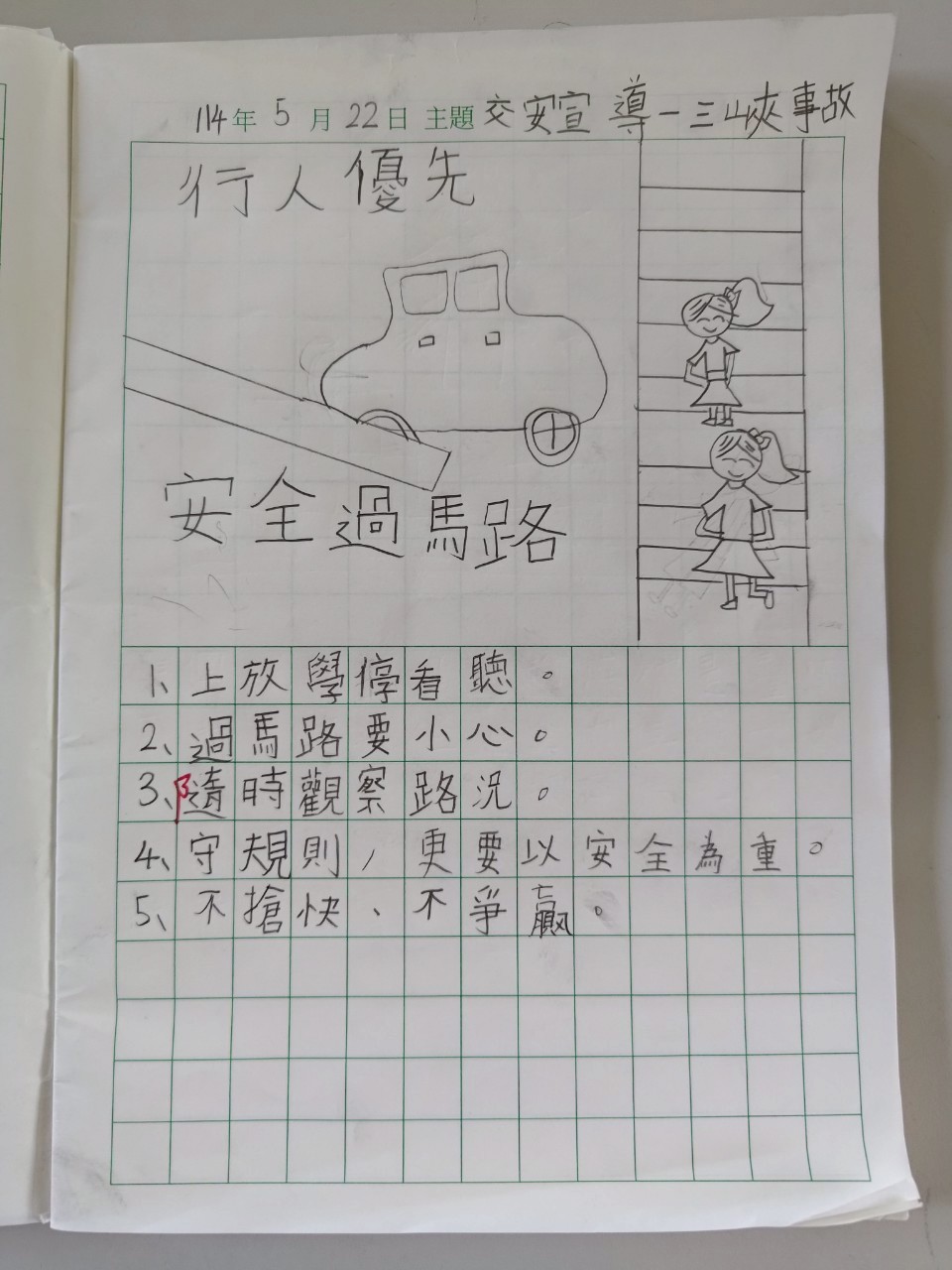 5月19日在三峽,在三峽發生了一起重大的交通事故,引發大家對現下交通安全的重重憂心。校長特別囑咐生教組尋找適合給孩子們做宣導的素材,特別注意不要透露血腥畫面以免引起孩子的恐慌與不適,但也要確實達到宣導的效果。而透過資料及導師們對本事故的各角度分析,孩子們意識到馬路如虎口,我們不能把自己的安全交付在別人手中,自己的安全,要加倍小心,走在馬路邊,一定要隨時注意身邊的人車及聲音,一有不對,要及時察覺、馬上移動到安全的地點!希望大家都要平安喔!
