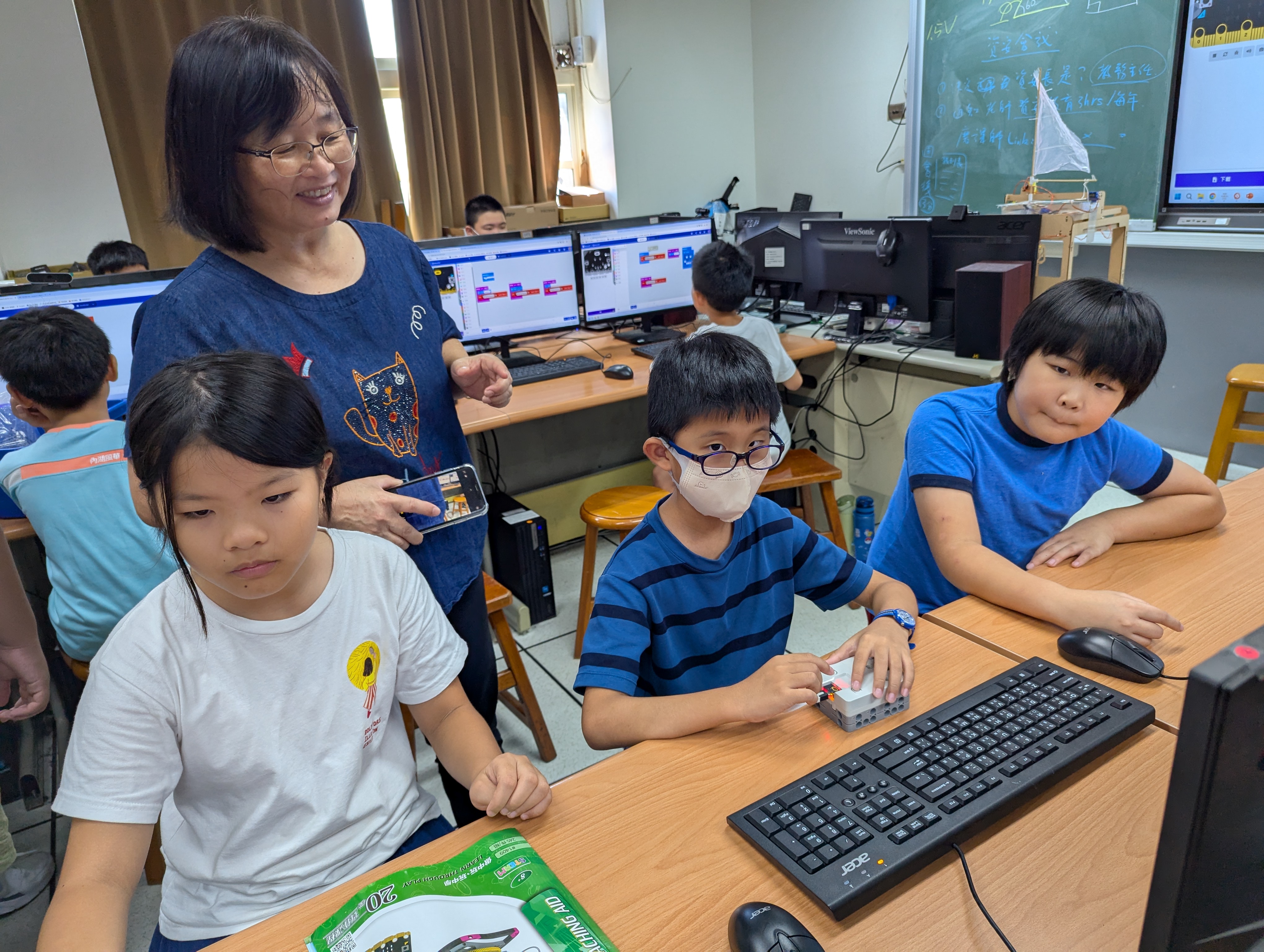 經歷各個任務訓練,終於要迎來最特別的活動,智高的Microbit相容套組,認識創客領域常用的18650電池、感測器模組和積木的功能以後,終於可以分組進行智能積木任務,但可惜電控部分沒能如願作動,期待下次活動可以真正達到程式控制的各個任務。介紹實用自學資源,可以先從模仿學習SCRATCH遊戲設計專案,再加入進階改動平衡遊戲所在意的公平、樂趣與挑戰性。希望密集的程式設計訓練可以讓孩子了解平時只有每周一次資訊課所無法傳遞的豐富資源,感謝陳雲如慈善基金會贊助內湖國小辦理此營隊。