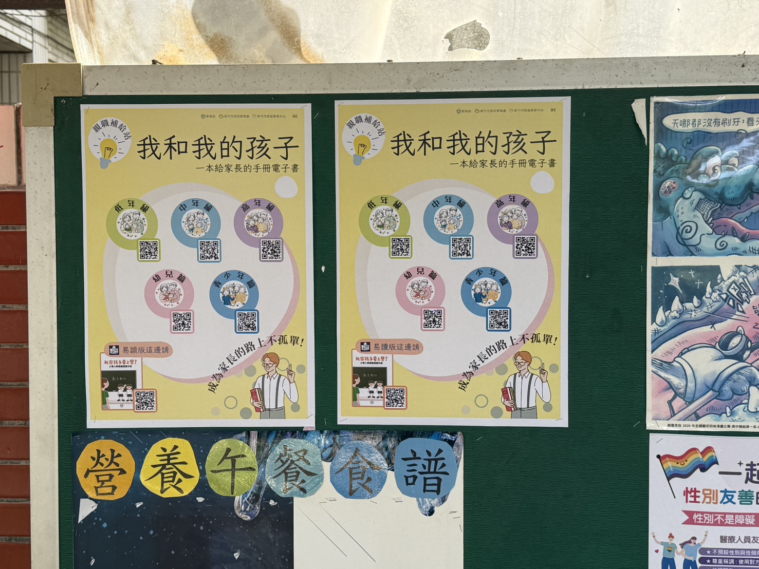 為了提升家長的親職教養觀念,新竹市家庭教育中心特別印製了《我和我的孩子:一本給家長的手冊》系列宣導海報,提供家長在教養過程中更多的參考與資源。本校已於公布欄張貼海報,讓師生與社區家長都能第一時間看見相關訊息。