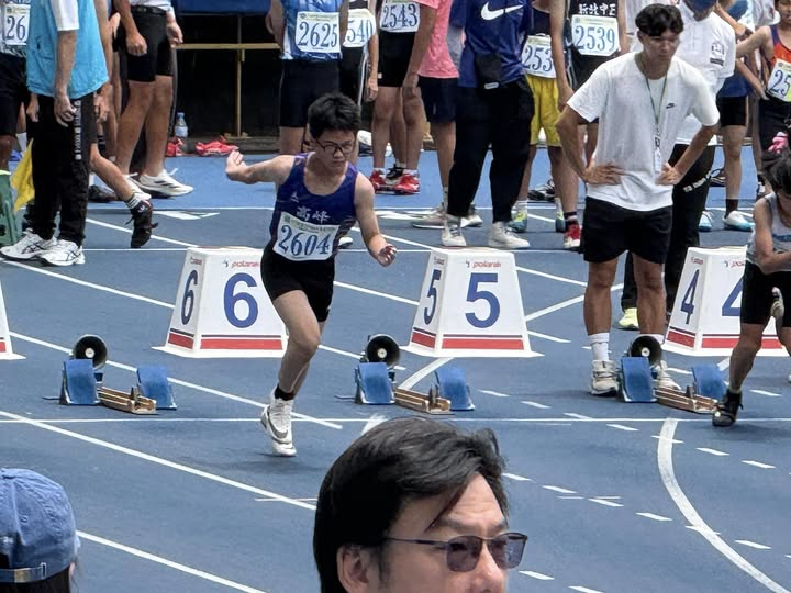 本校田徑隊員 吳晨睿 同學於114.06.14參賽「114年臺北市青年盃田徑賽」,給自己於畢業前的挑戰,晨睿於田徑隊期間一直默默專心於訓練上,對於田徑的喜愛,無論風吹日曬雨淋,他都專注於突破自己、享受奔跑瞬間。在畢業前的這場全國賽事,晨睿再次突破自己的PB,一百公尺跑13.30秒,二百公尺跑27.00秒,締下本校記錄,雖然沒有進入全國決賽,但田徑帶給晨睿的禮物,或許更在於訓練的全力以赴.比賽時的心無旁鶩.賽後的笑容與感覺自己的不足不斷努力。