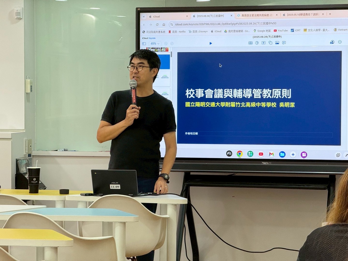 為提升教師專業知能,增進對校事會議相關法規與流程的理解,新竹市三民國中教師會於暑假期間特別舉辦教師增能研習,邀請到《關心學生,竟然官司纏身?教師專屬的法律諮商室》作者,同時也是國立交通大學附屬竹北高級中學的吳明潔老師,進行專題講座。