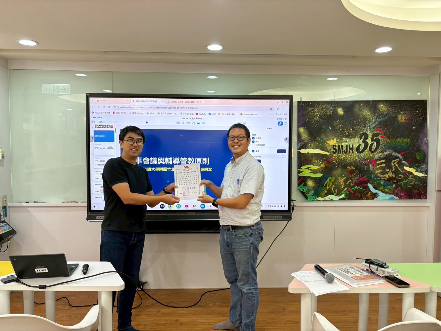 此次講座以「校事會議與輔導管教原則」為主軸,吳老師以自身經驗及專業知識,深入淺出地說明校事會議在學校治理中的角色、法源依據,以及教師在會議中應具備的權利與義務。同時,他也提醒教師如何在法令架構下自我保護,並調整心態,以更從容面對突如其來的挑戰。