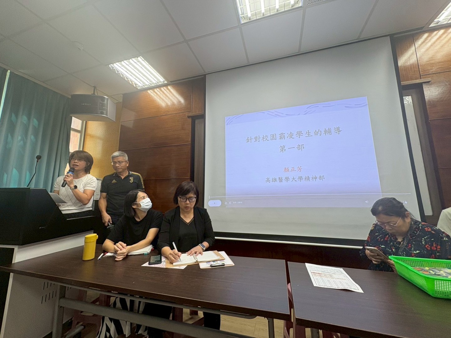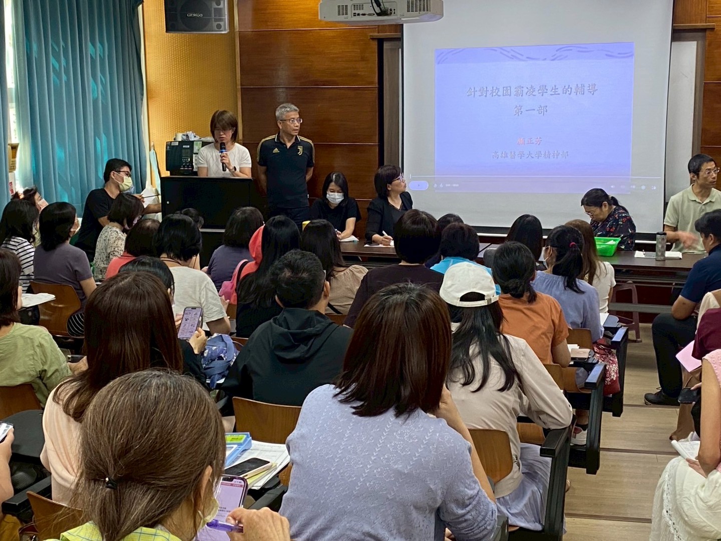 8月28日輔導處利用教師備課日舉辦了校園霸凌「被」行為人輔導教師研習,旨在強化教師對校園霸凌的認識和處理能力。 本次研習是根據教育部最新政策和學界研究成果進行的,旨在讓參與者獲得有關霸凌的知識、技能和價值觀。活動過程中,教師們了解包括「霸凌的定義和類型」、「被霸凌者的感受和需求」、「教育霸凌的有效策略」等。