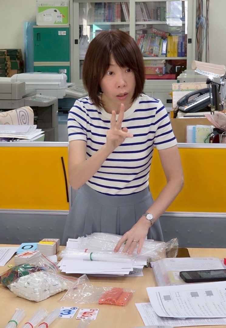 當我們在電腦教室討論完課程設計後,再移動到輔導處,我們分為「數學組」和「英語組」,各組討論如何依據「基本學習內容」來設計「多元教學」。以數學組為例:我們以「NC-1-1-4 100以內序數的命名,並用序數描述位置及先後關係,及「SC-1-1-2 利用間接比較(含個別單位的方法)比較兩物體的長短,並利個別單位實測的結果進行比較與加減計算」為例,討論如何利用「花片」、「小方塊」、「數字加減卡」、「1-120數字卡」將一年級的這幾個概念延伸至二年級的數學概念,讓學生可以藉由具體操作理解抽象的數學概念。
