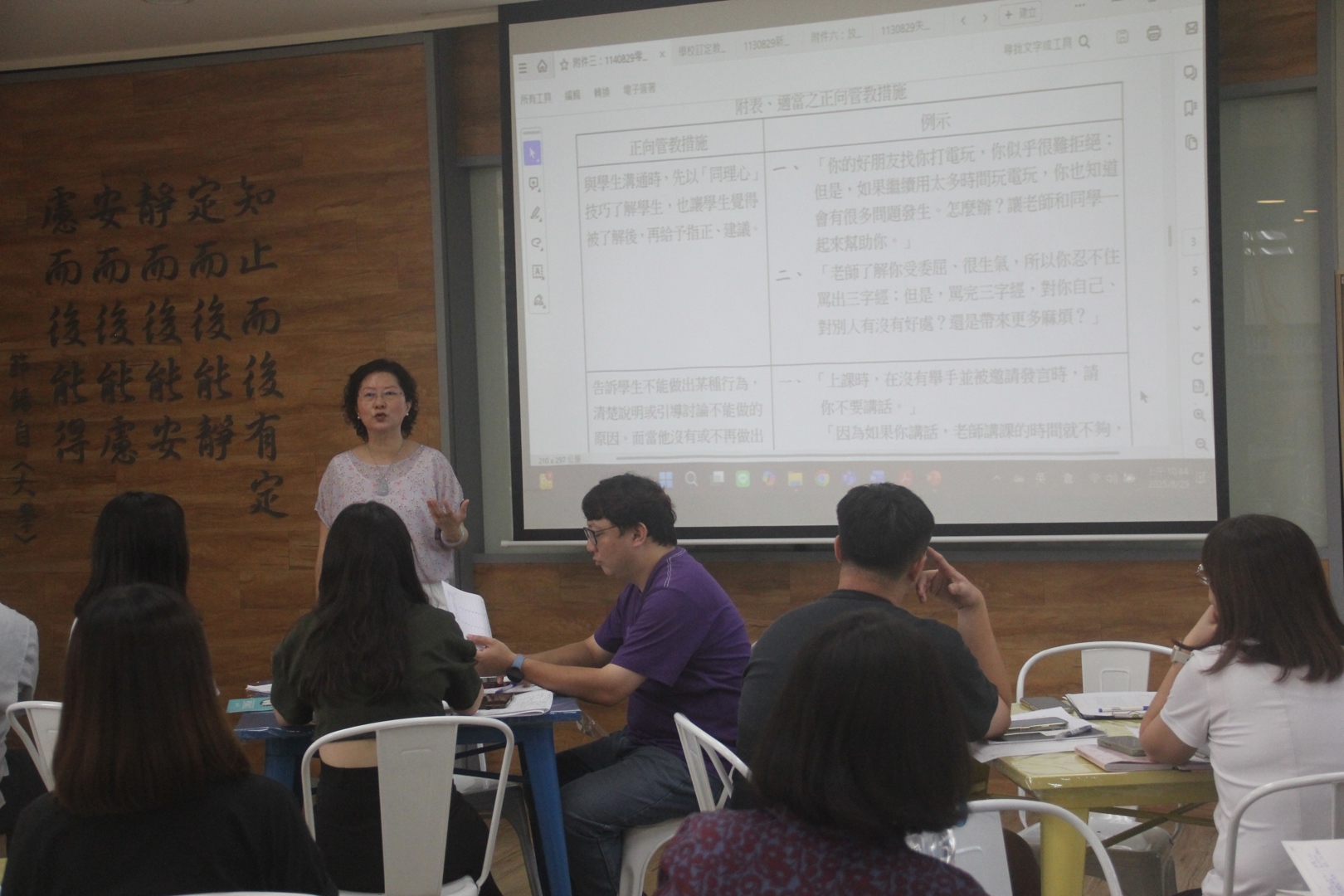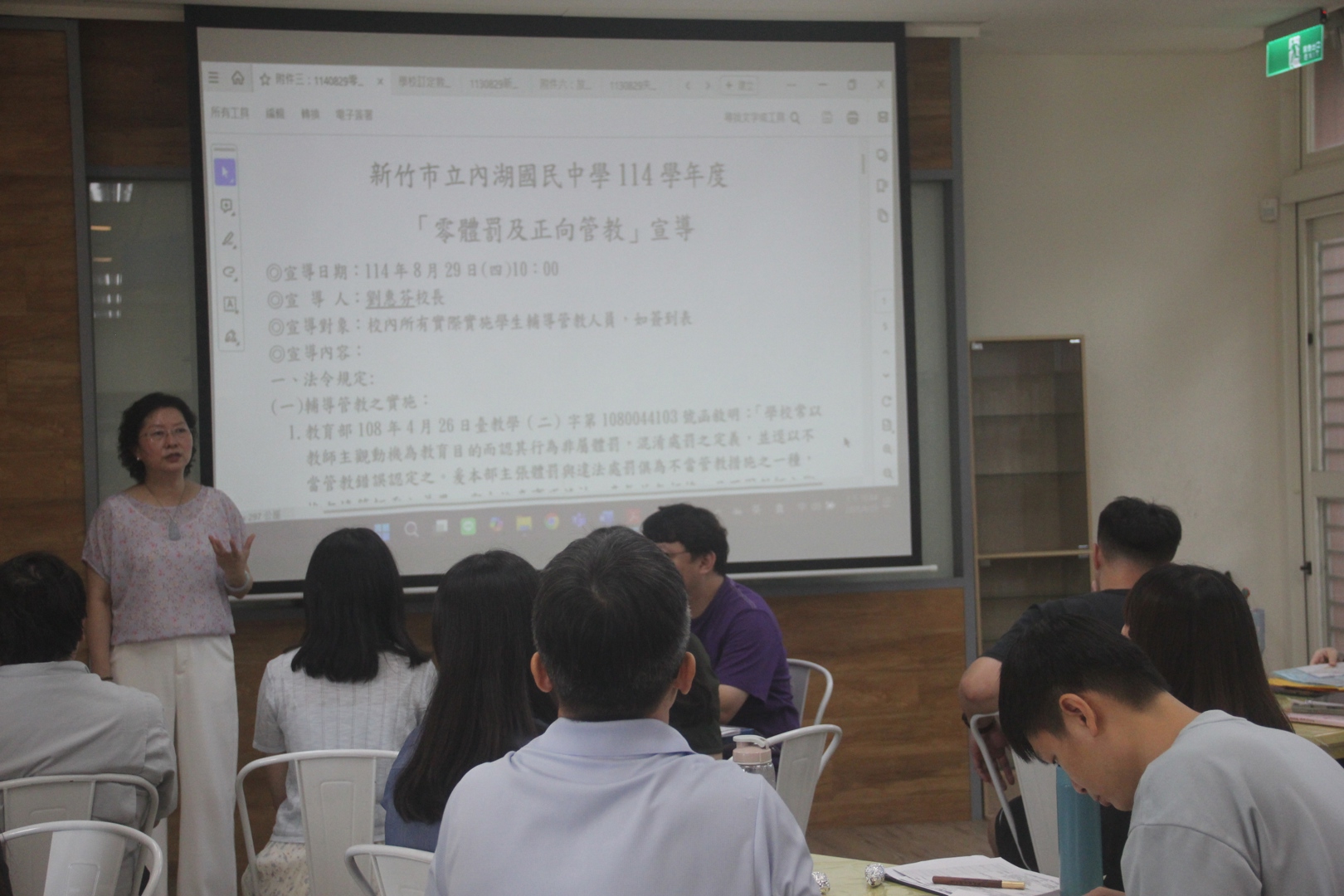 本校繼續推動負責任的正向管教理念,以實現「零體罰」校園環境。於114年8月29日全校開學會議時,劉惠芬校長親自對全校教職員進行強化正向管教宣導,傳達以「正向友善、溫暖支持」的教育理念,旨在通過「以勸導代替處罰」和「以獎勵提昇品行」的策略,帶領學生,期許每一位教職員能本於教育理念,依據教育之專業知能與素養,透過正當、合理且符合教育目標的方式,實現積極正向協助、教育、輔導學生的目的。