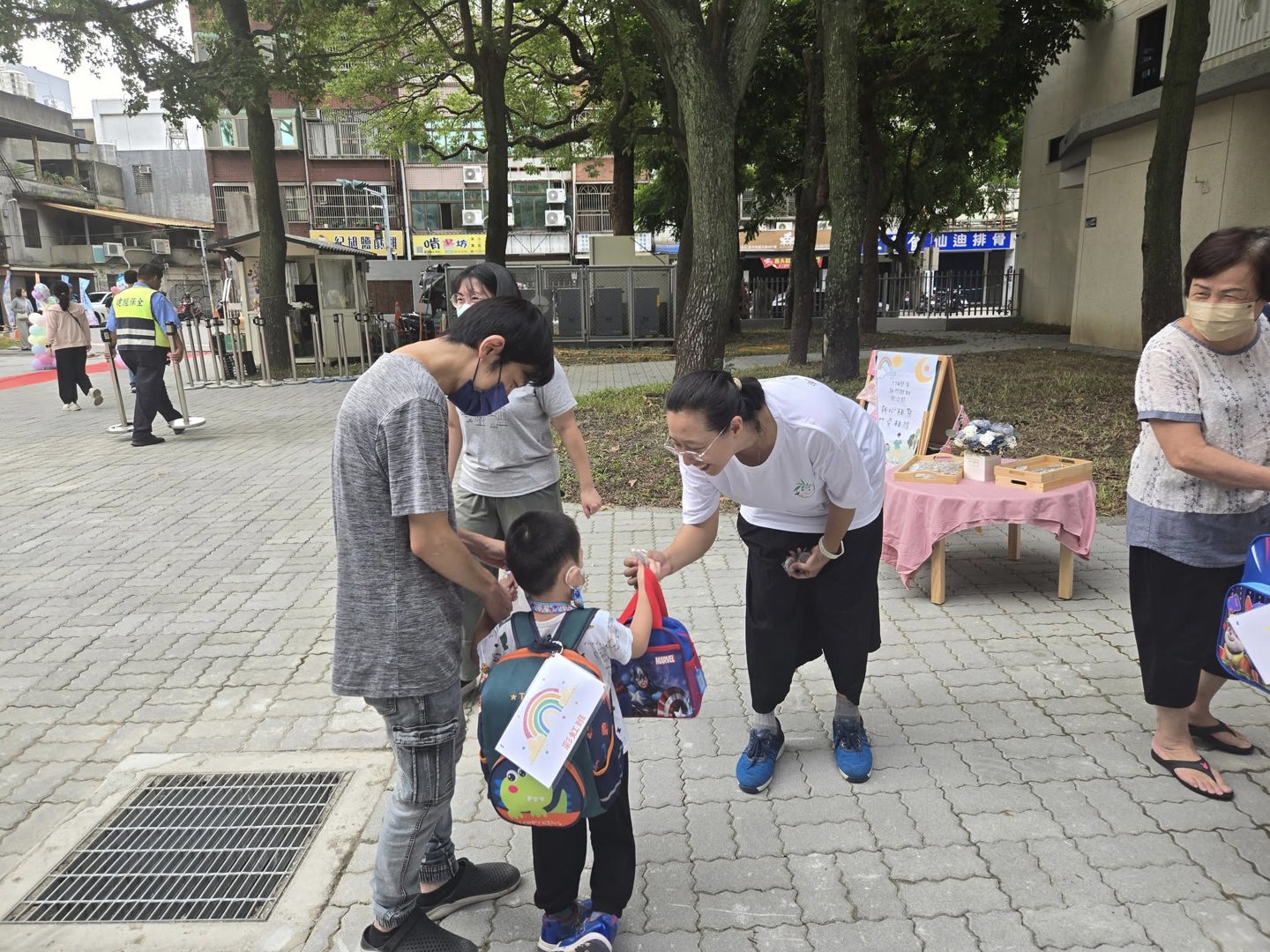 竹小附幼開學日114.09.01登場,家長陪伴孩子踏上紅毯,師長送上竹小附幼徽章作為見面禮,孩子們滿懷喜悅與期待迎接新學期的開始。