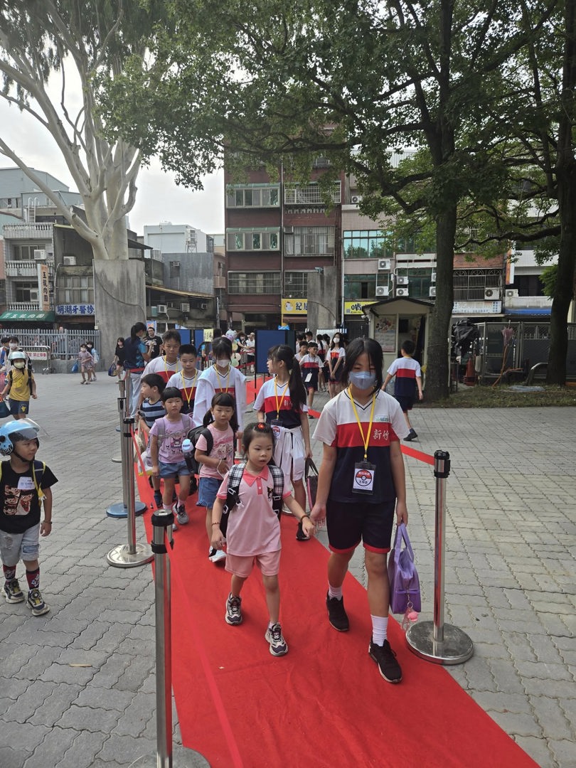 新竹國小開學日114.9.1,高年級學長姐熱情擔任「愛的快遞」,一路陪伴一年級新生踏入校園。活動中敲響象徵啟迪智慧的智慧鑼,為孩子們揭開學習新篇章。學長姐更貼心引導新生進入教室,讓小一孩子感受校園的溫暖與關懷,在歡樂氛圍中迎接充滿希望的新學期。