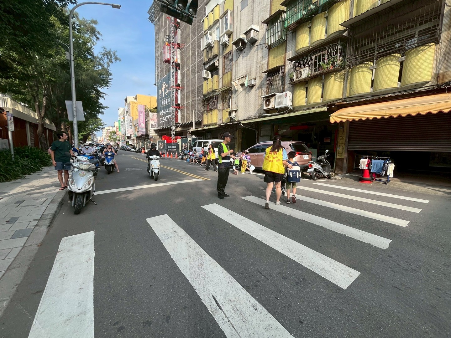 本校上放學時段開放經國路與民富街側門,因這兩條街道呈平行狀,希望可以適當地分散車流,因為民富街道較小,雙向皆只有一線道,故規劃為機車優先停等區,感謝本校家長全力配合,放學時間一到,都可以看到整齊的機車排列,依照低中高年段的時間錯開,機車的車流一陣陣輪替,讓所有用路人都能平安經過,雖然才開學第一週,忙亂中總需要提醒,唯有全校2000名學生家長的支持,才能讓我們時時創造一個順暢的路線…