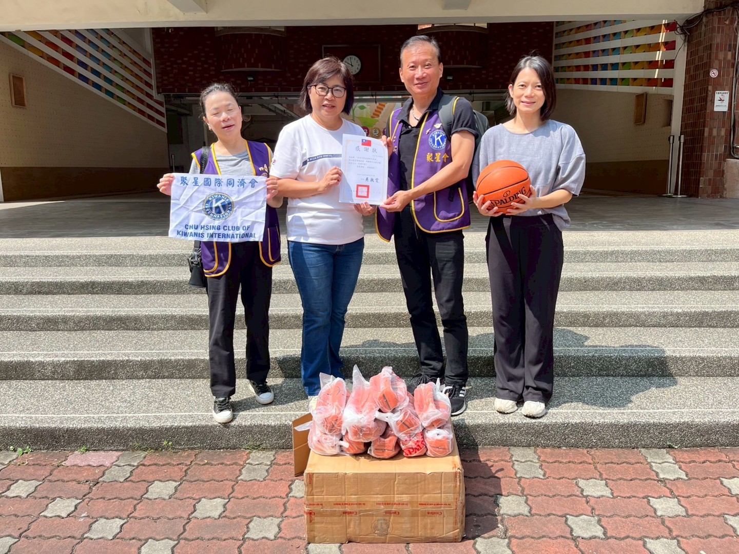 114年9月5日感謝聚星國際同濟會捐贈本校小朋友教學用籃球,民富國小籃球隊經常參與各項聯賽屢獲佳績,特別在今年五月參加113學年全國小學籃球聯賽榮獲冠軍。帶動全校籃球風氣,全校小朋友踴躍打籃球。感謝您的付出~民富青出於籃、民富好棒、民富加油!