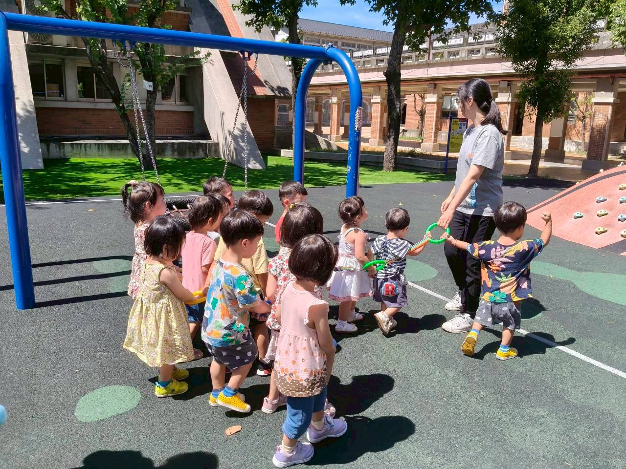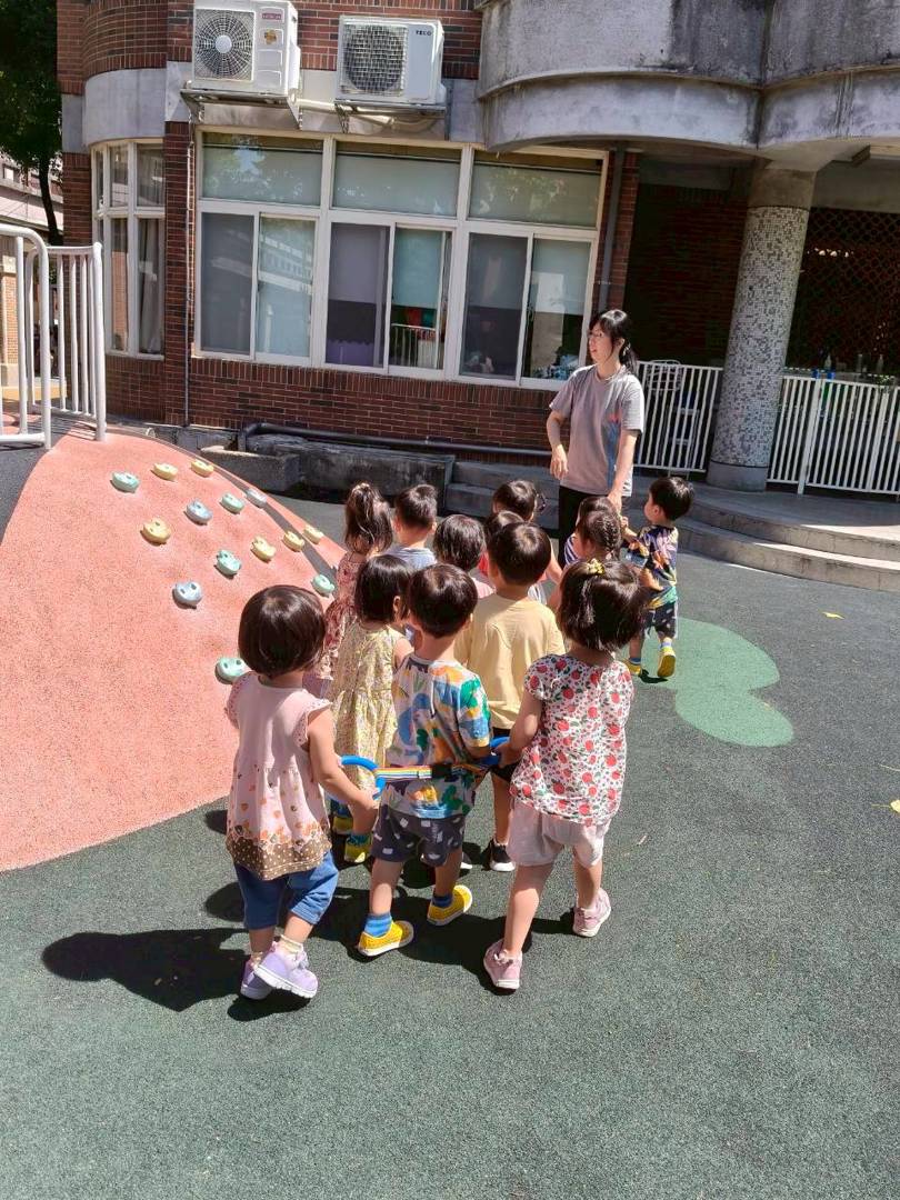 戶外遊戲時間是小朋友最期待的時光,玩遊具前一定要注意安全,幼兒園的老師帶著孩子們認識戶外遊戲場:溜滑梯、平衡遊具、鞦韆等等,溜滑梯時要小心不要擋住別人,玩鞦韆要好好排隊,注意玩鞦韆的人數,才不會受傷,希望所有的孩子們都能享受開心的遊樂場時間。