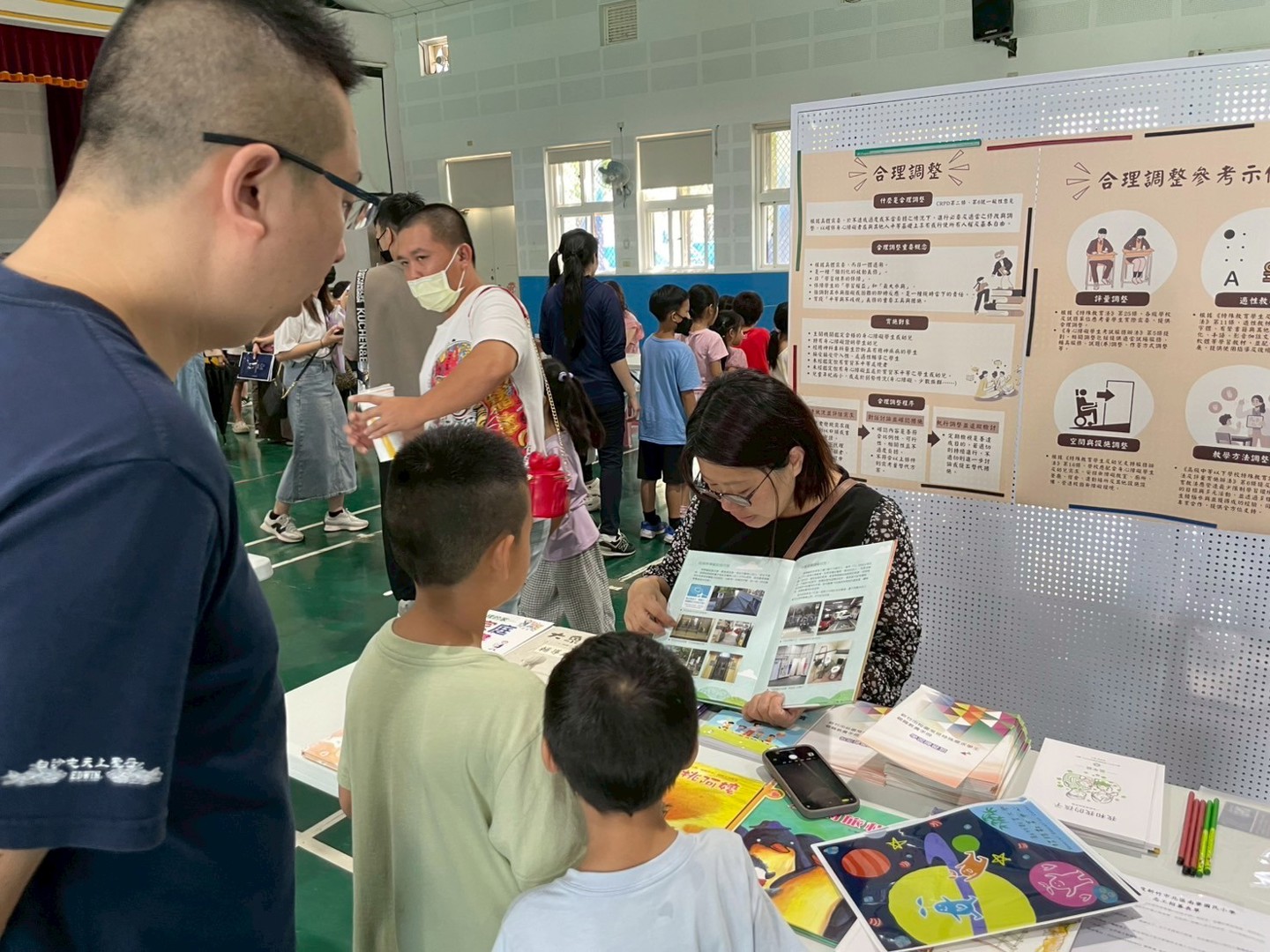 此外,學校特別安排在禮堂設置各個闖關卡,包括各式社團的特色,反毒教育宣導,提醒學生建立正確觀念,遠離誘惑,守護身心健康。衛生組則透過生動的短片與實物展示,進行護齒教育,教導學生正確刷牙方法,讓口腔保健觀念深植日常生活。輔導處也在推廣家庭教育,同時,資源班老師也進行特教宣導,讓家長更加理解融合教育的重要性,並呼籲大家以接納與支持的態度,共同打造友善校園。