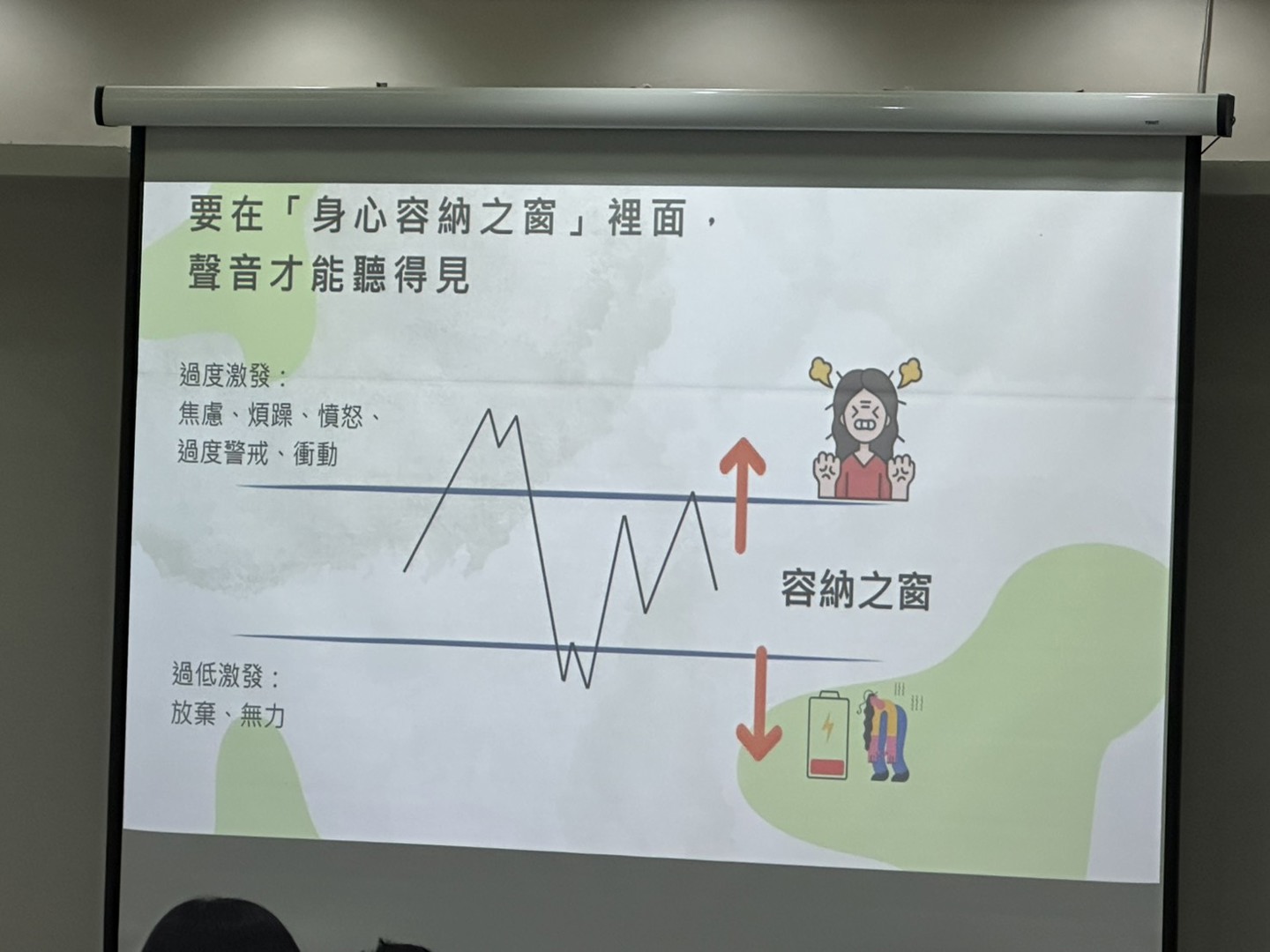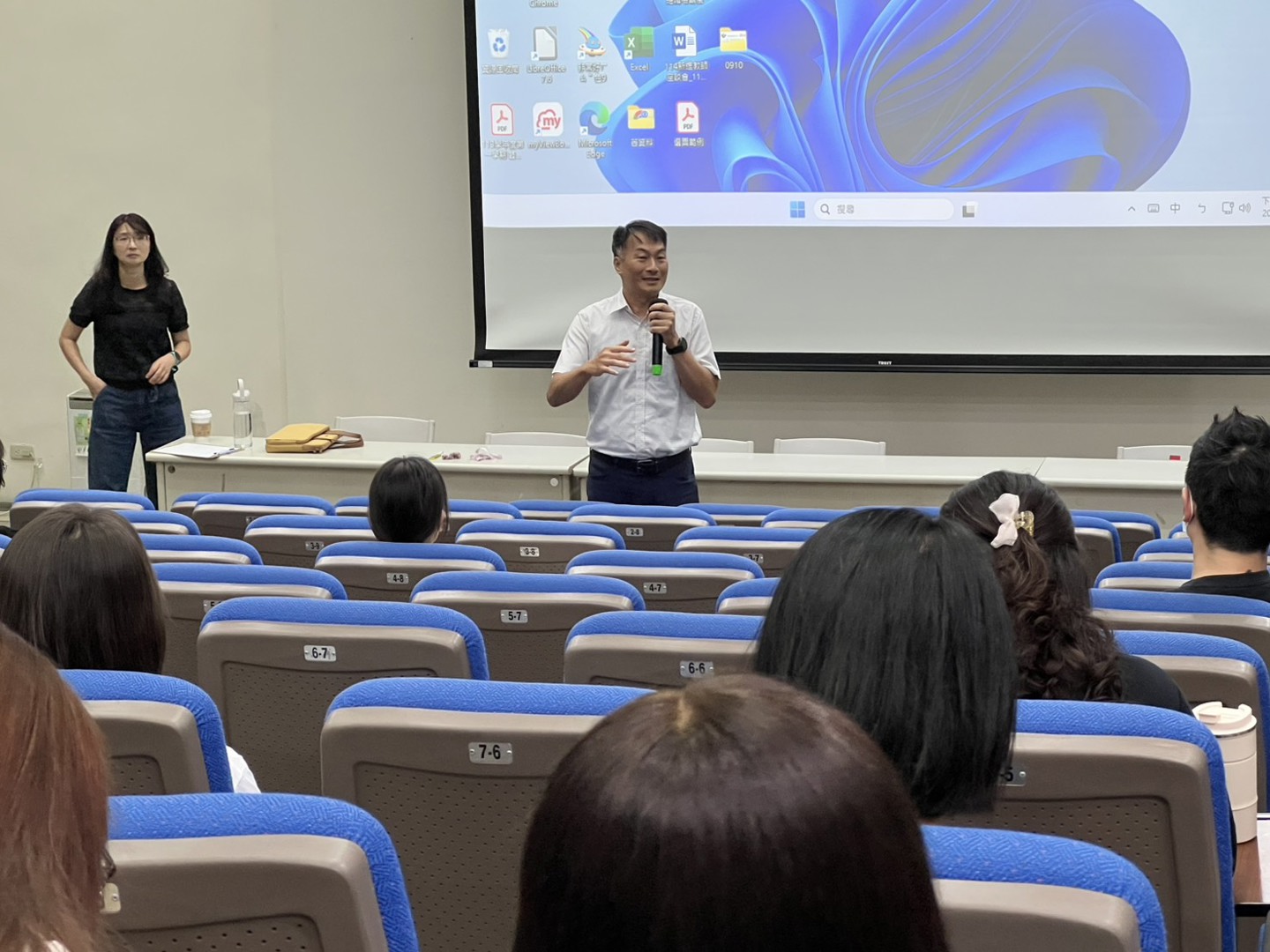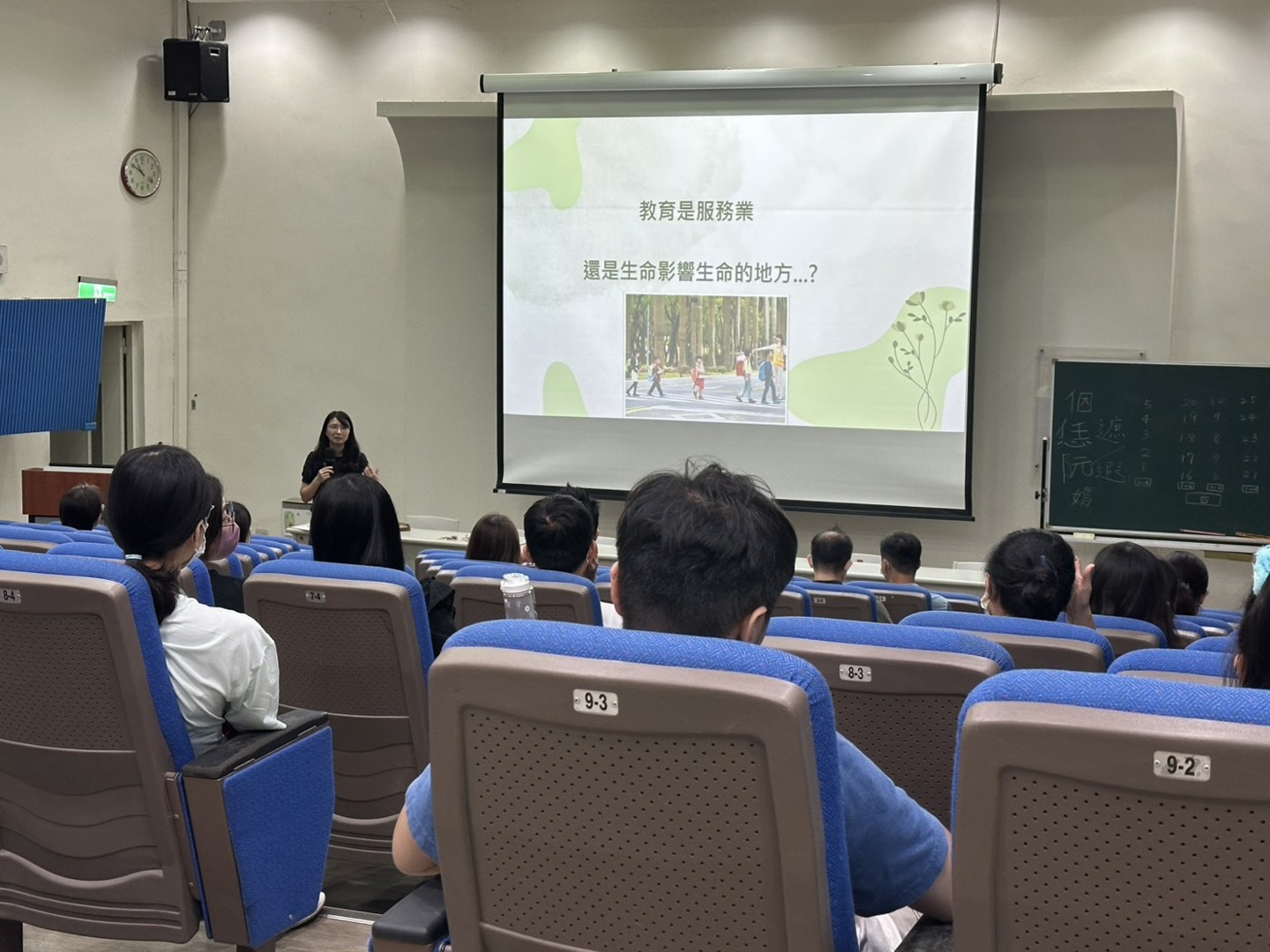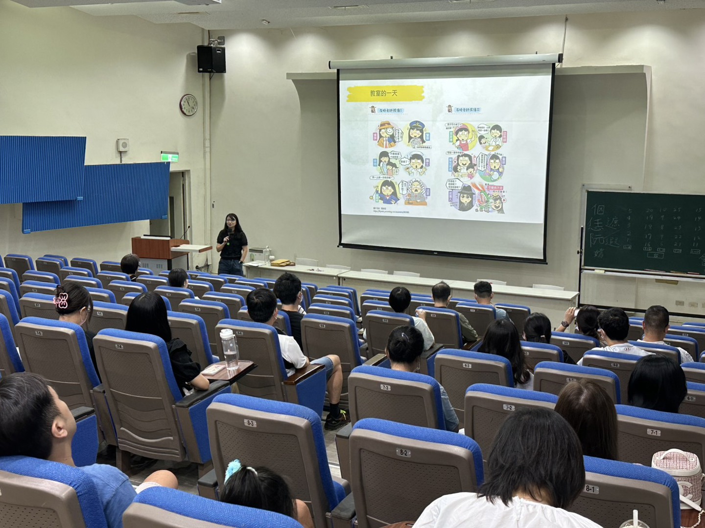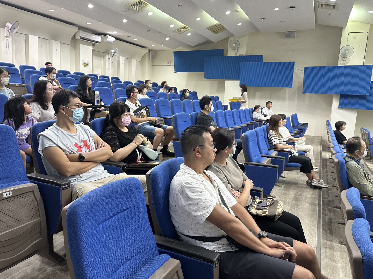 在結束各班導師精心準備的親師座談會後,家長們仍踴躍走進彩虹館視聽教室,參加由簡榆涵心理師主講的「親師溝通好溫暖」親子教養座談會。能在忙碌的一天中留下時間參與,顯見家長們對孩子教育的重視與用心。