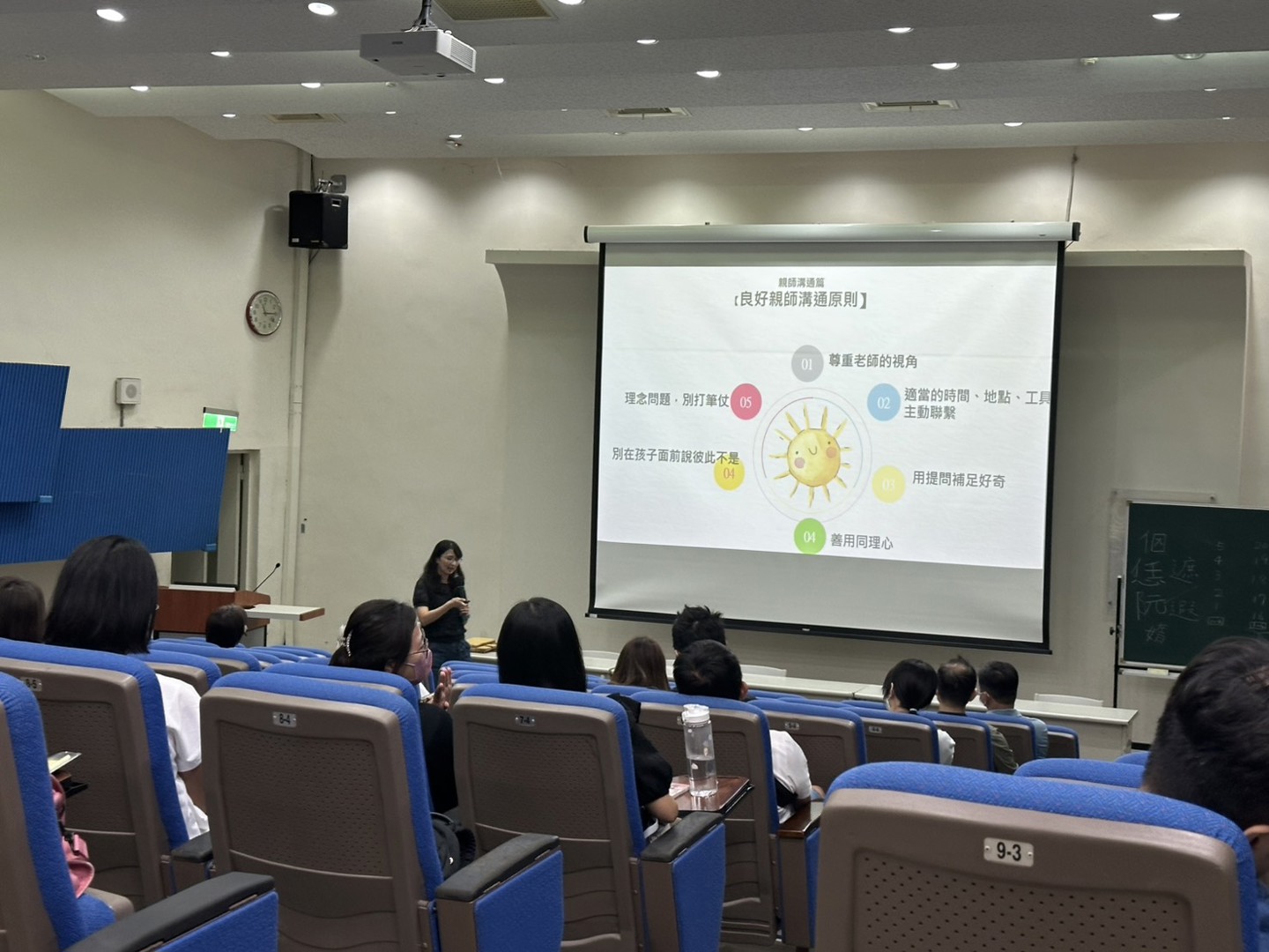 在座談的重點部分,心理師提出了「五個親師溝通原則」: