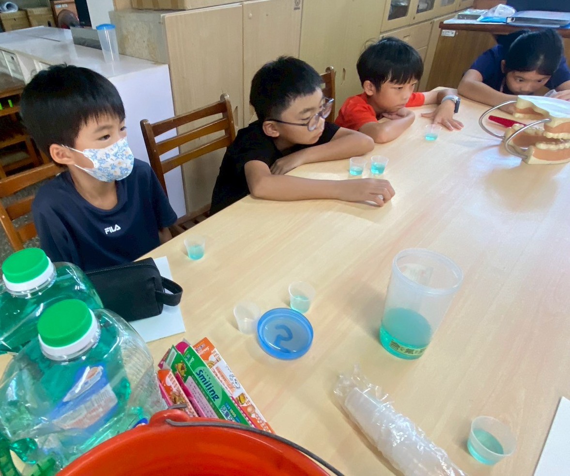 今日晨間時光,各班級的潔牙小天使齊聚健康中心,接受培訓課程。課程內容包括口腔衛生的重要觀念、正確潔牙的方法,以及使用含氟漱口水的操作要領。其中,能發現潔牙小天使們專心聆聽並實際操作倒、清洗小漱口杯,也展現了擔任小小衛生推廣員的責任感與熱忱。