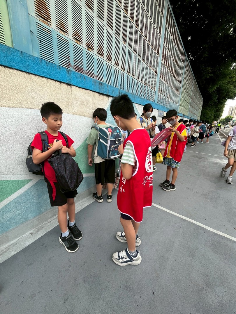 這次學務處準備的交通安全主題是【九月交通安全月】,交通安全教育週的系列活動二:交安小尖兵◆路口執勤去,為了使更多學生投入交通安全宣導行列,將已知交安意識推廣出去,更能發揮影響同儕的力量。這個月的交安小尖兵是六年三班的學生,他們在王瓊慧導師的帶領下,每個月都有參加交通安全教育週的課程,相信由他們來宣導交通安全議題,是十分確切的,他們拿著宣導海報,向大家說明其中意涵,接受宣導的學生,可領取一張「交安兌獎單」,完成題目空格後,在約定的日子前交回學務處,答案正確即可兌換獎品。
