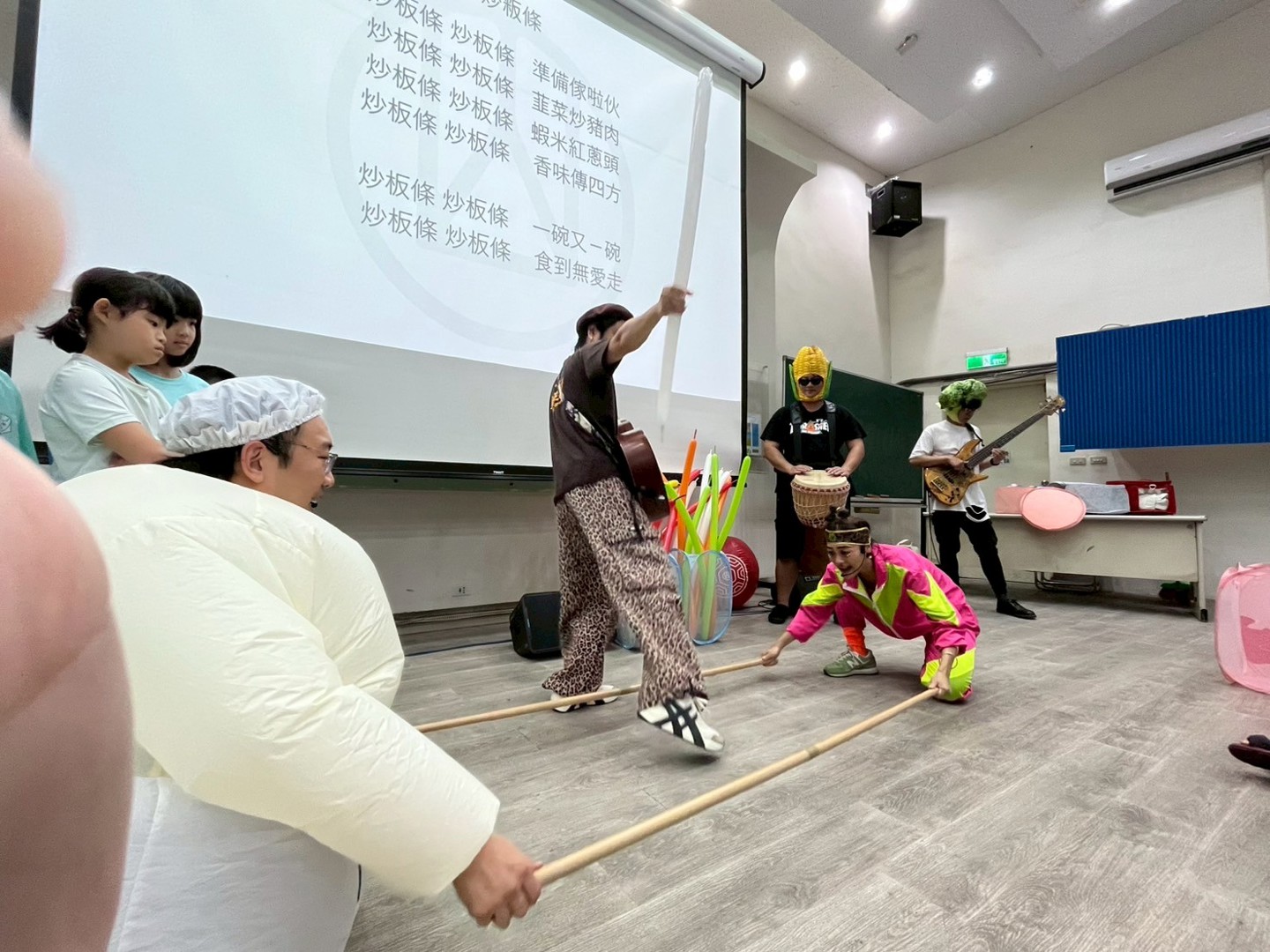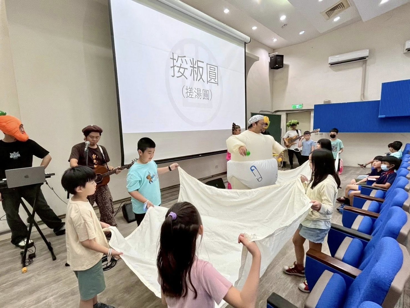 - 「共下來打粄」:介紹新丁粄的由來,同時也傳達「生男生女一樣好」的性別平等觀念,最後邀請小朋友跟著音樂一起「打粄」,氣氛超嗨!