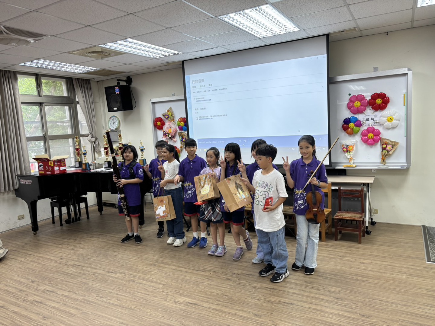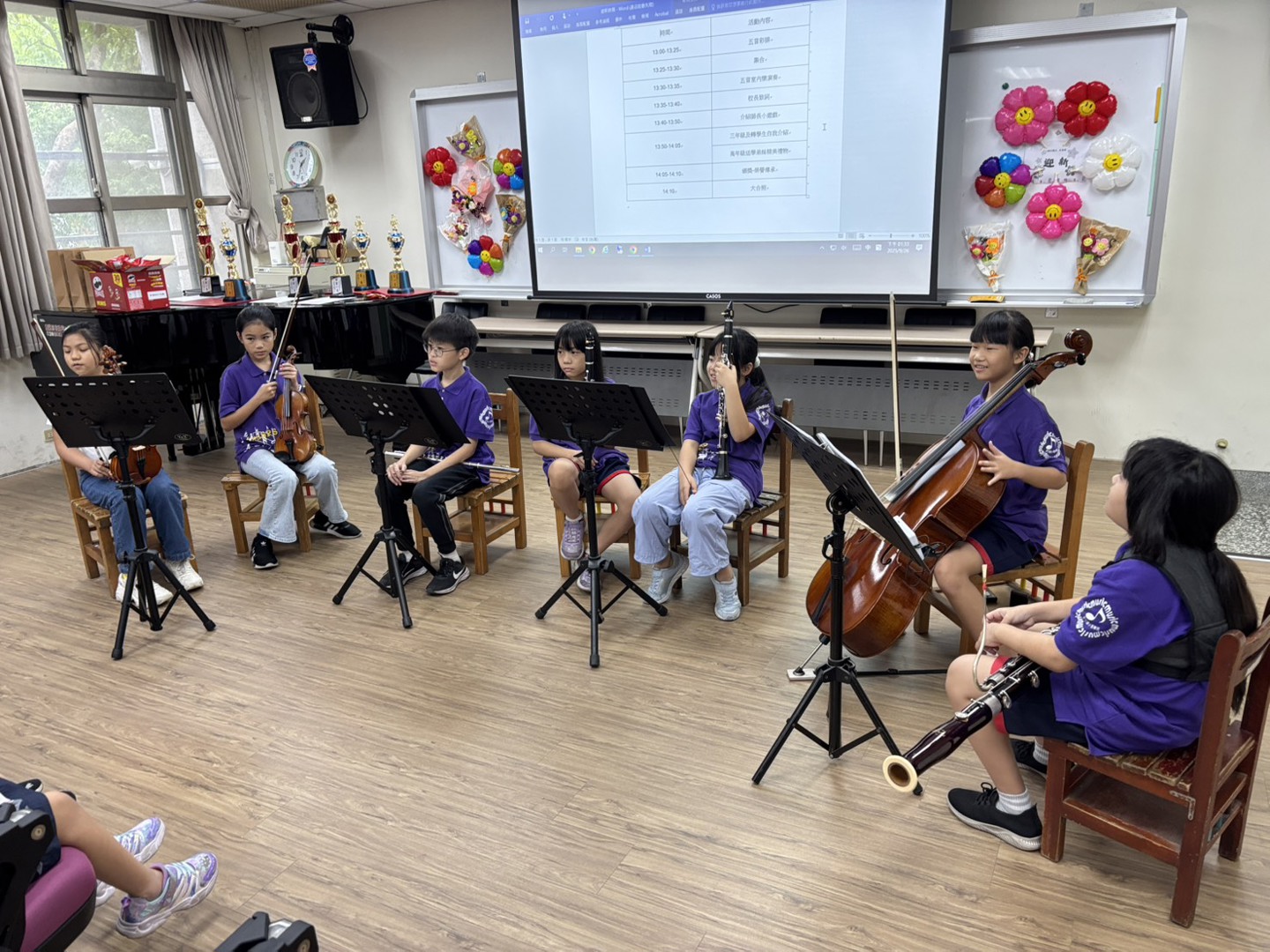 新竹國小音樂班於上週五中午在聚賢樓舉行迎新活動,由五年級音樂班同學精心策劃與主持,場面熱鬧又溫馨。活動以五音班級合奏揭開序幕,整齊劃一的演奏展現了團隊默契,也讓新生與轉學生感受到音樂班的活力與熱情。接著新加入的同學逐一上台自我介紹,增進彼此認識與交流。