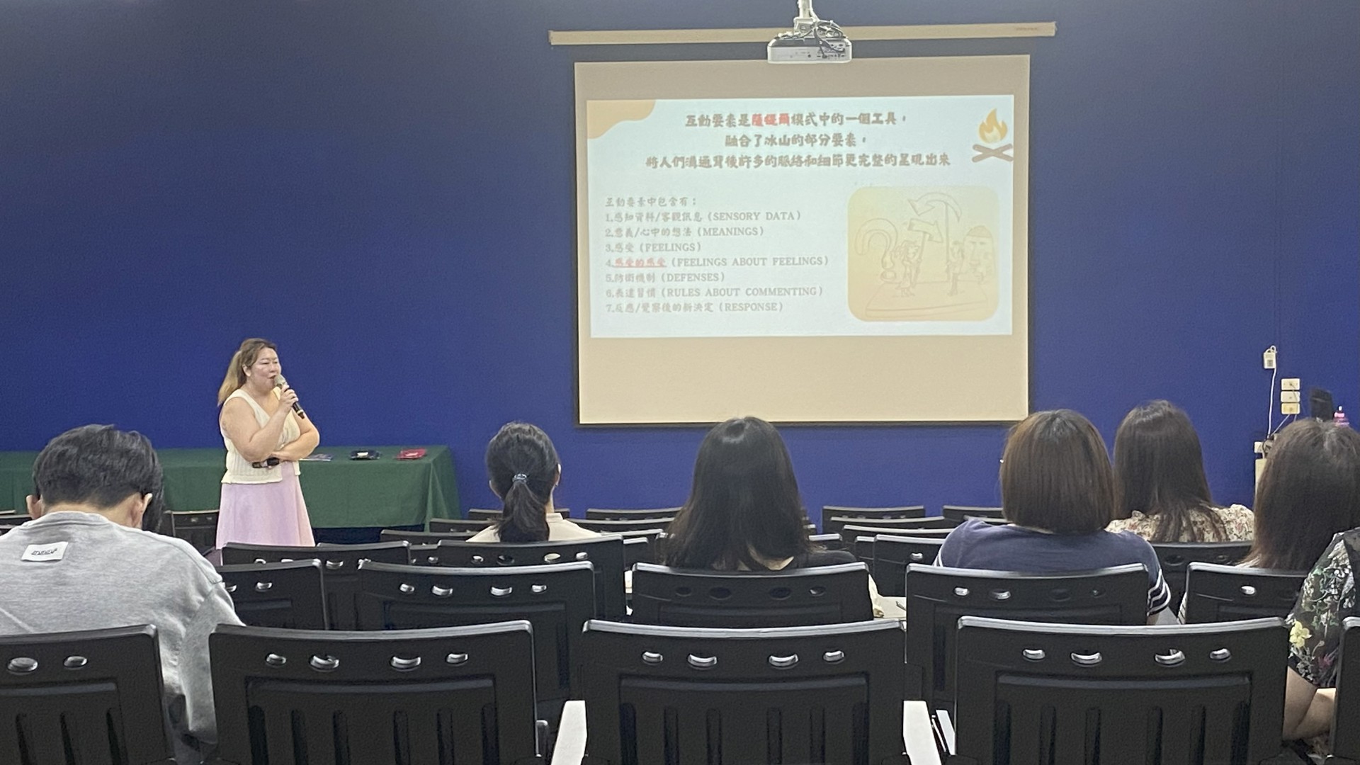 教師節的前夕,新竹市學諮中心的慧文社工帶來「友善輔導:師生溝通好溫暖」的講座與頂埔的老師們分享。慧文社工介紹現在正流行的MBTI人格特質讓老師來認識自己,並從人格特質中來分析自己是屬於「指導型」、「民主型」、「自由型」或「愛的教育型」的教學風格,再從不同的教學風格中來練習如何正向而肯定的與學生或家長進行溝通。因為情緒穩定的教師,才能有效與溫暖地與學生溝通。