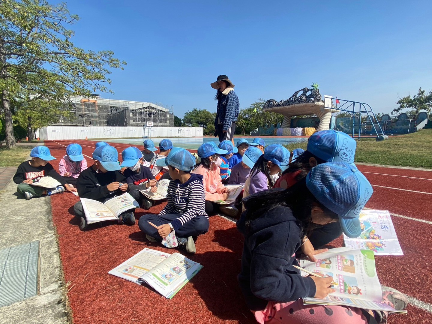 因為正萱老師她也會教我們國語、數學、生活課。而且,她還會帶我們玩課間遊戲!正萱老師會幫我們處理難題。