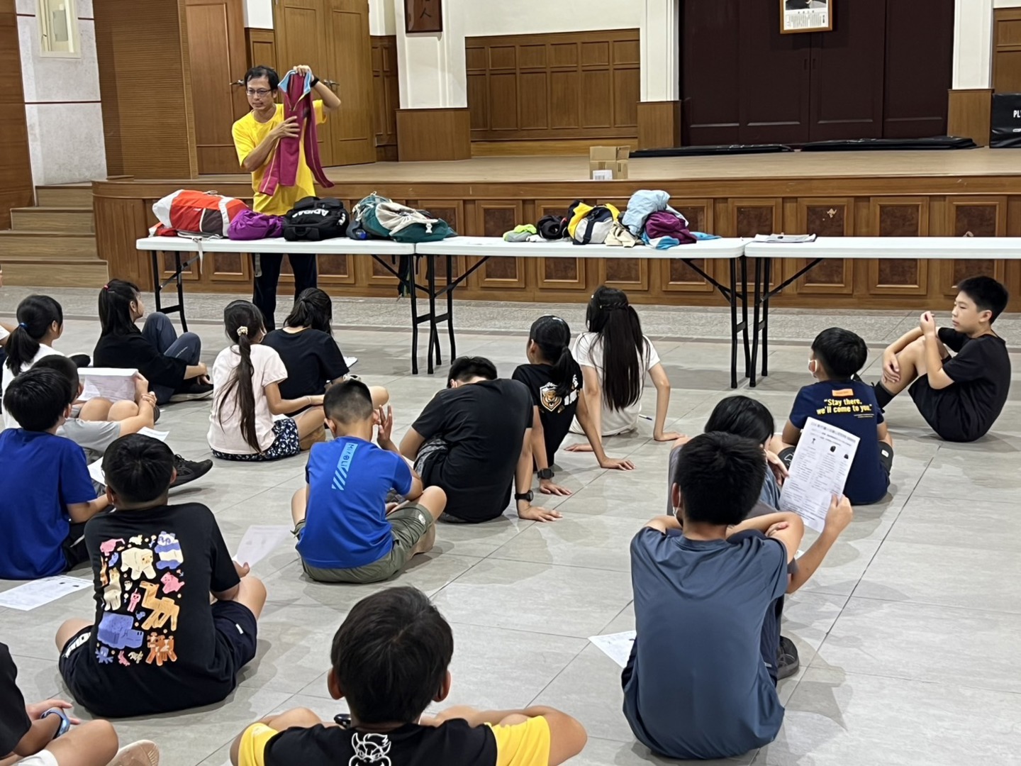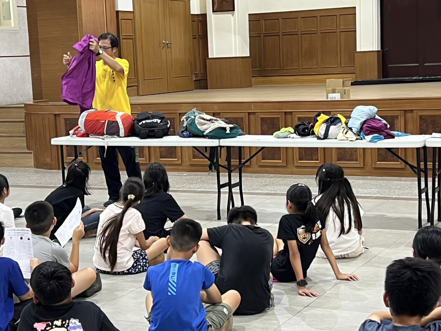午休的室內課程是登山裝備的說明,裝備分成三個部分:身上穿的、隨身背包及行李。