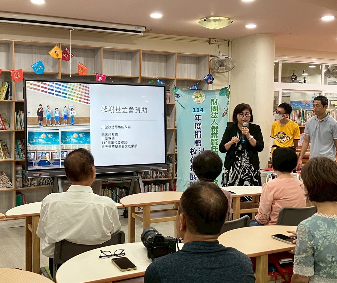 在本次捐贈典禮中,副董事、同時也是退休校長的林貞秀女士,回顧基金會的創立初衷,並笑稱重返熟悉場域「就像回娘家」,現場氣氛熱絡。隨後,由與會校長與受贈單位代表分享經費運用情況,包括民富國小各項教學成果、港南國小戶外生態踏查、東區樂齡中心推動的代間教育「祖孫樂學營」等活動,都因基金會的支持得以更加順利推行。