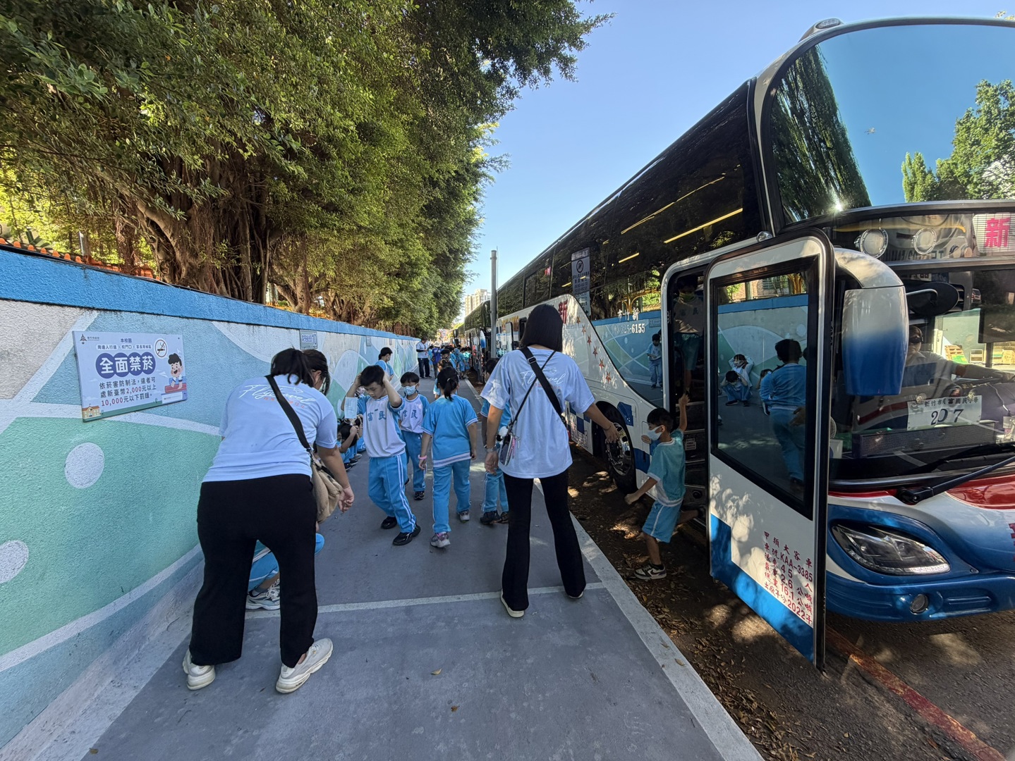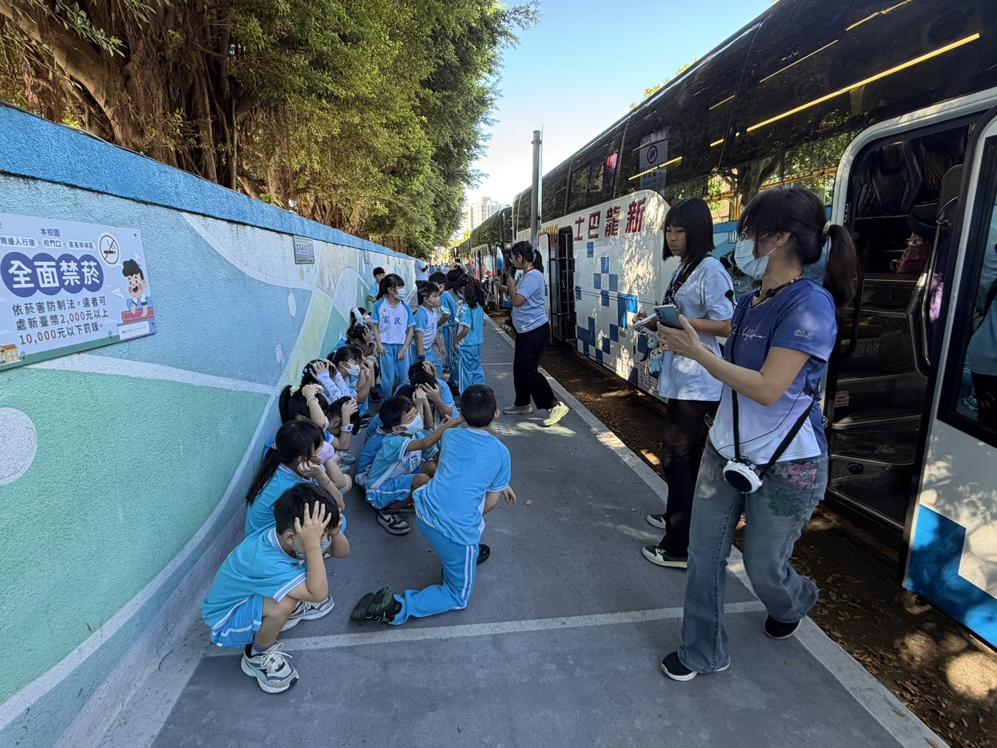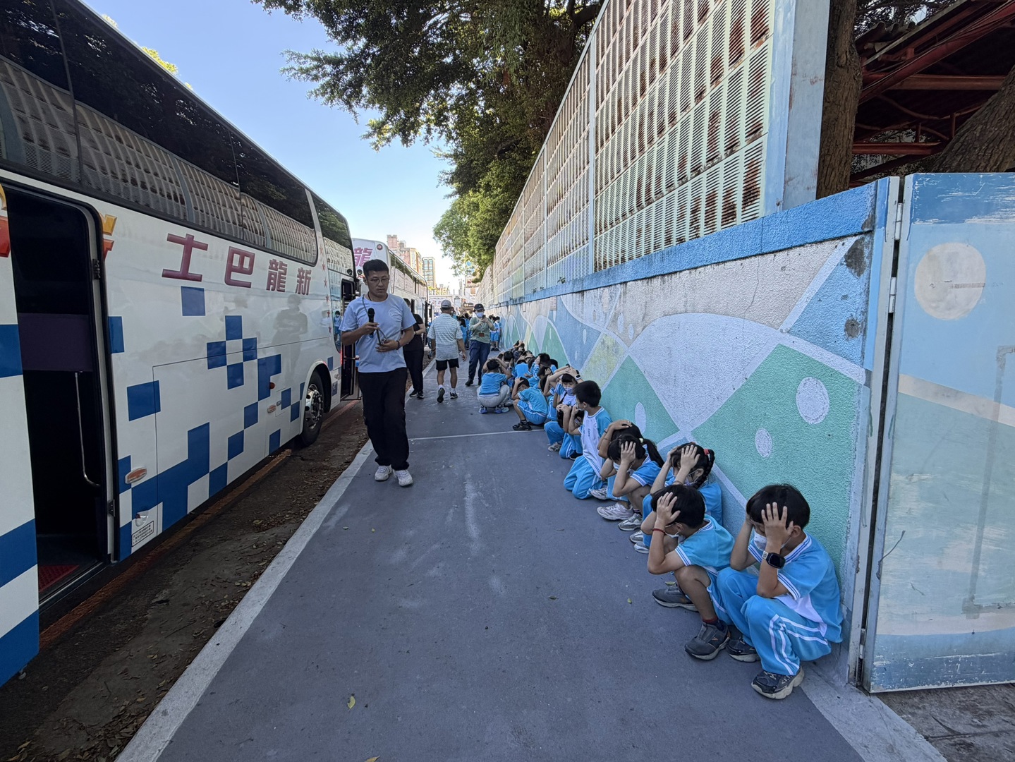 10.07(二)是二年級戶外教育的日子,二年級共有12個班,要一同出遊去小叮噹科學主題樂園,老師們出發前做了仔細的行車檢查,接著讓學生們做完整的逃生演練。各班學生依序上車,專心聆聽隊輔講解安全事項:包含車窗擊破器.滅火器使用,及逃生門的位置,聽完講解後,每班孩子隨即做逃生出口演練,演練狀況迅速確實,秩序良好,感謝二年級各班導師協助指導,相信今天一定快快樂樂出門,平平安安回家!