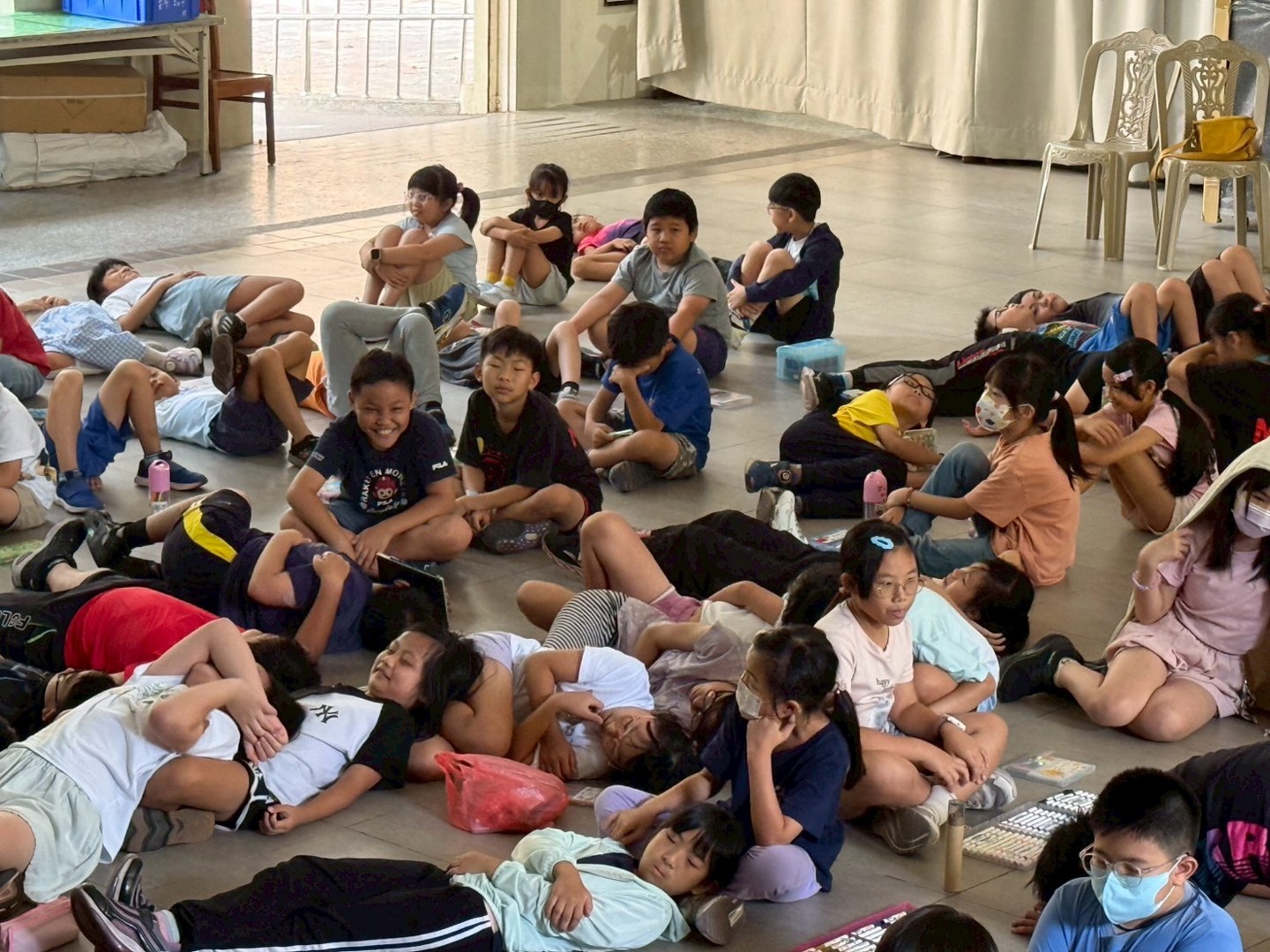 新竹國小與籽樂教育合作,邀請TFT講師陳念群老師擔任SEL(社會情緒學習)體驗課程,帶領學生進行「身體掃描」活動,透過專注呼吸與感受身體的變化,學習覺察情緒與身體之間的連結。課程中,學生閉上眼睛,慢慢觀察從腳到頭的每一處感受,發現生氣時身體會緊繃、難過時胸口會沉重,而開心時呼吸輕盈、身體放鬆。透過體驗,孩子們自在地躺下或依靠在一起,沒有口語交談,只能專注聆聽身體的聲音,在快節奏的生活享受片段的緩慢步調。當音樂聲停止,孩子們分享:「有放鬆的感覺,在短短幾分鐘,將很多事情拋諸腦後...。」也有孩子說:「自己放不下,因為還是有學習上的煩惱...。」學生更了解情緒不是壞事,而是可以被覺察與調整的訊號,學會以深呼吸安定心情,並在生活中以更平靜的方式面對情緒挑戰,開始了辨識與覺察自我情緒的第一步,朝向更圓融的人際互動。